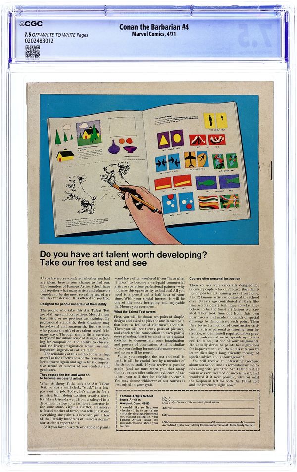 Giant-size issue. Cover art by Barry Windsor-Smith. Giant-size issue. Rogues in the House starring Thak [an ape] (villain, introduction), Nabonidus, Igon, Jenna, and Murilo (introduction), script by Roy Thomas, pencils by Barry Windsor-Smith, inks by Sal Buscema; adapted from Rogues In the House by Robert E. Howard. Letter to the editor from cartoonist Fred Hembeck. Windsor-Smith cover. 52 pgs. Cover price: $0.25. Cover price $0.25.