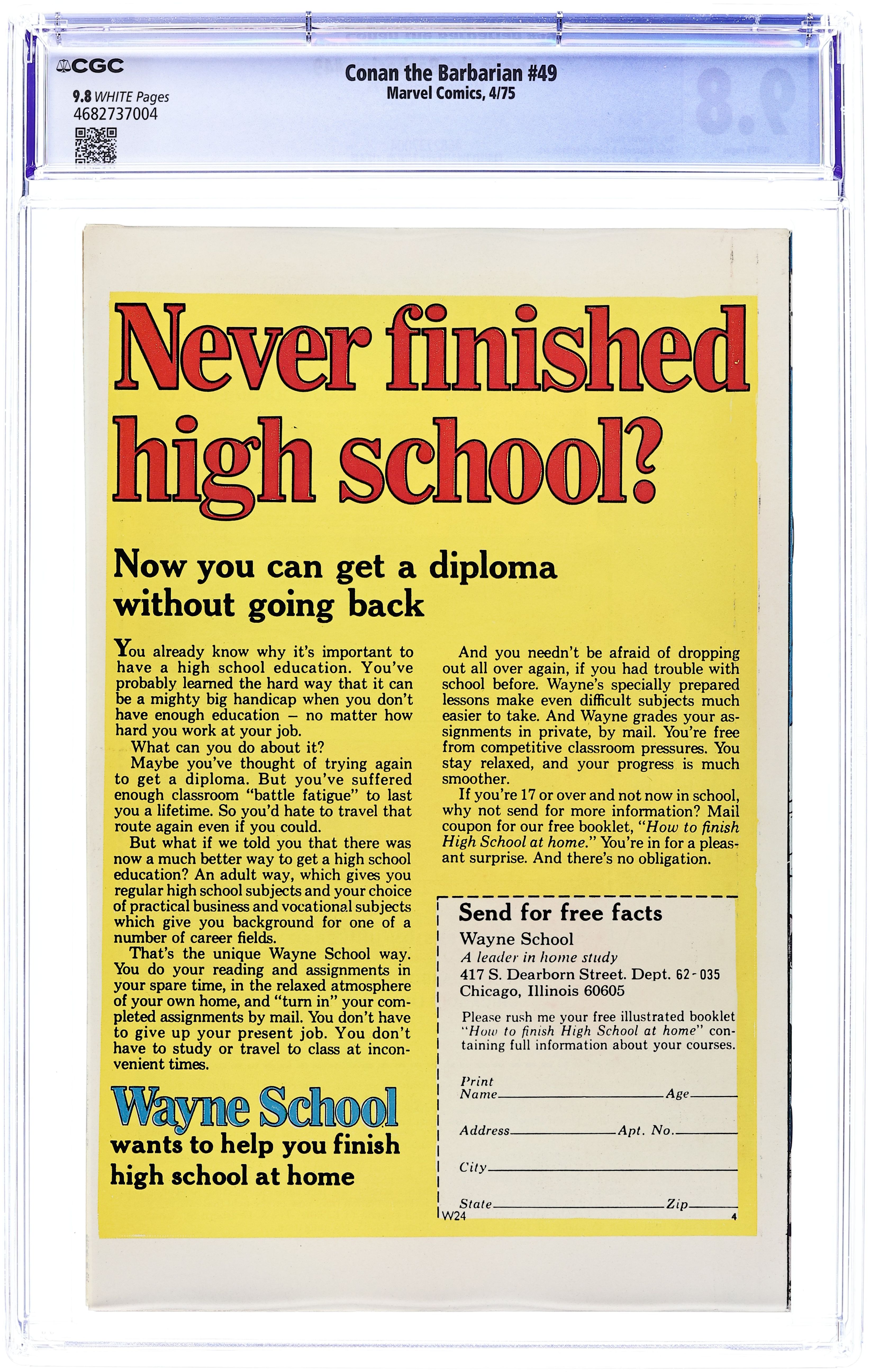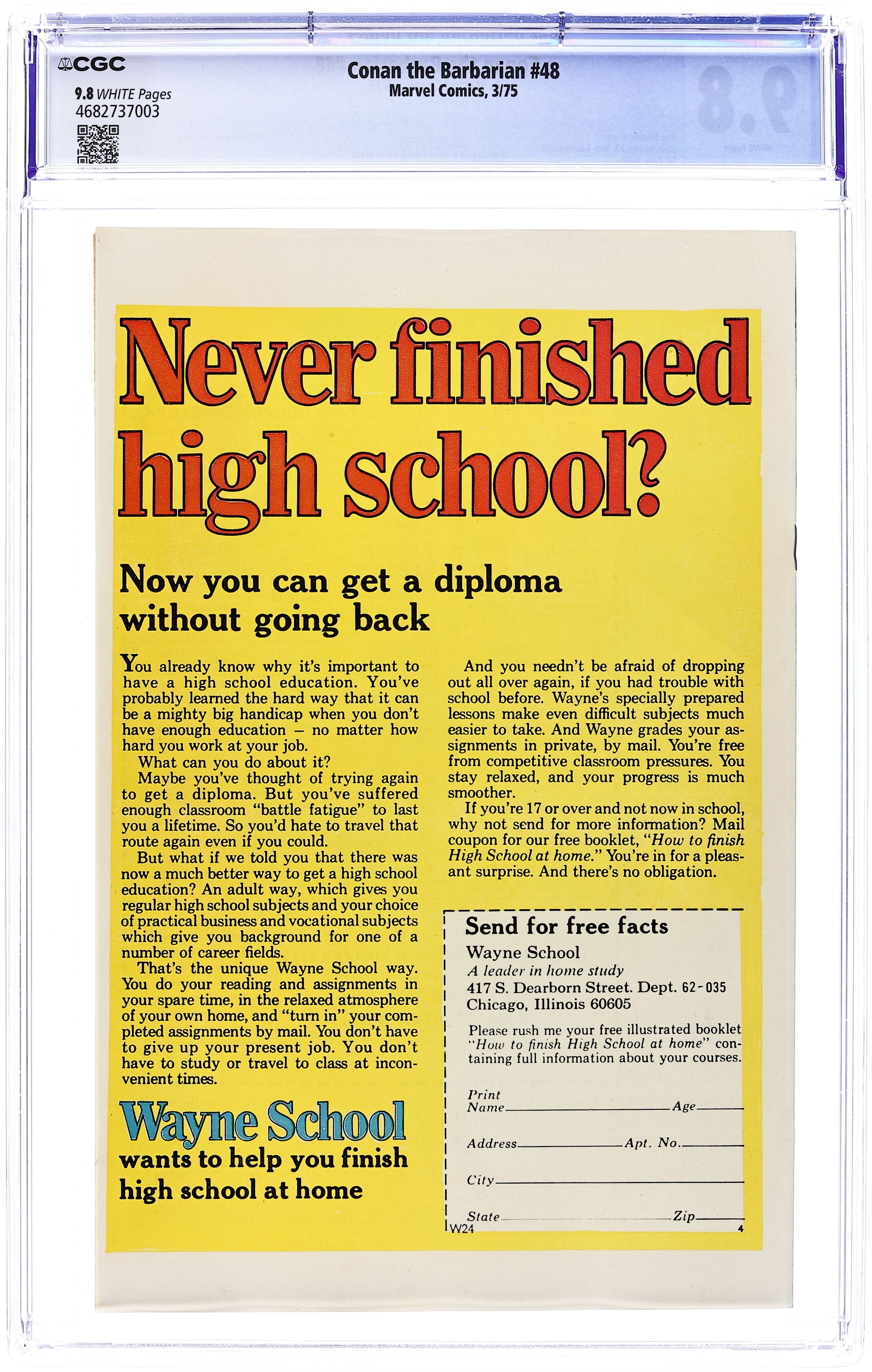 "The Quest Ends!" Script by J.M. DeMatteis, art and cover by Gil Kane. Conan pin-up by Romas. Captain Marvel stars in a one-page Hostess ad, "Flea Bargaining." 36 pgs. Cover price $0.60.
