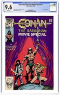 All reprints: "Lair of the Beastmen" from Conan # 2 and "The Tower of the Elephant" from Conan # 4 (scripts by Roy Thomas, pencils by Barry Windsor-Smith, inks by Sal Buscema). Half-page Hyborian Age map by Windsor-Smith. Half-page essay noting the awards the Conan comic had won in just the first two years of its existence. New Windsor-Smith cover. 52 pgs. Cover price $0.35.