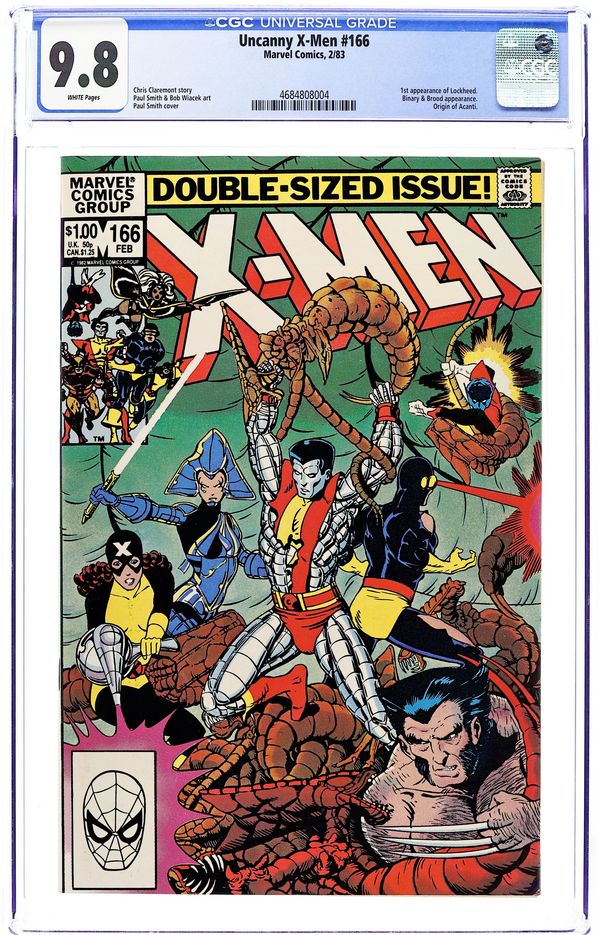 Newsstand Edition. Part 5 of 6. Story by Chris Claremont. Art by Paul Smith and Bob Wiacek. It's the final battle between the sinister Brood and the Uncanny X-Men. But when the Earth heroes learn a startling secret about their mentor, Professor X, they discover that they may already be too late to save their home world. First appearance of Lockheed. 52 pgs. Cover price $1.00.