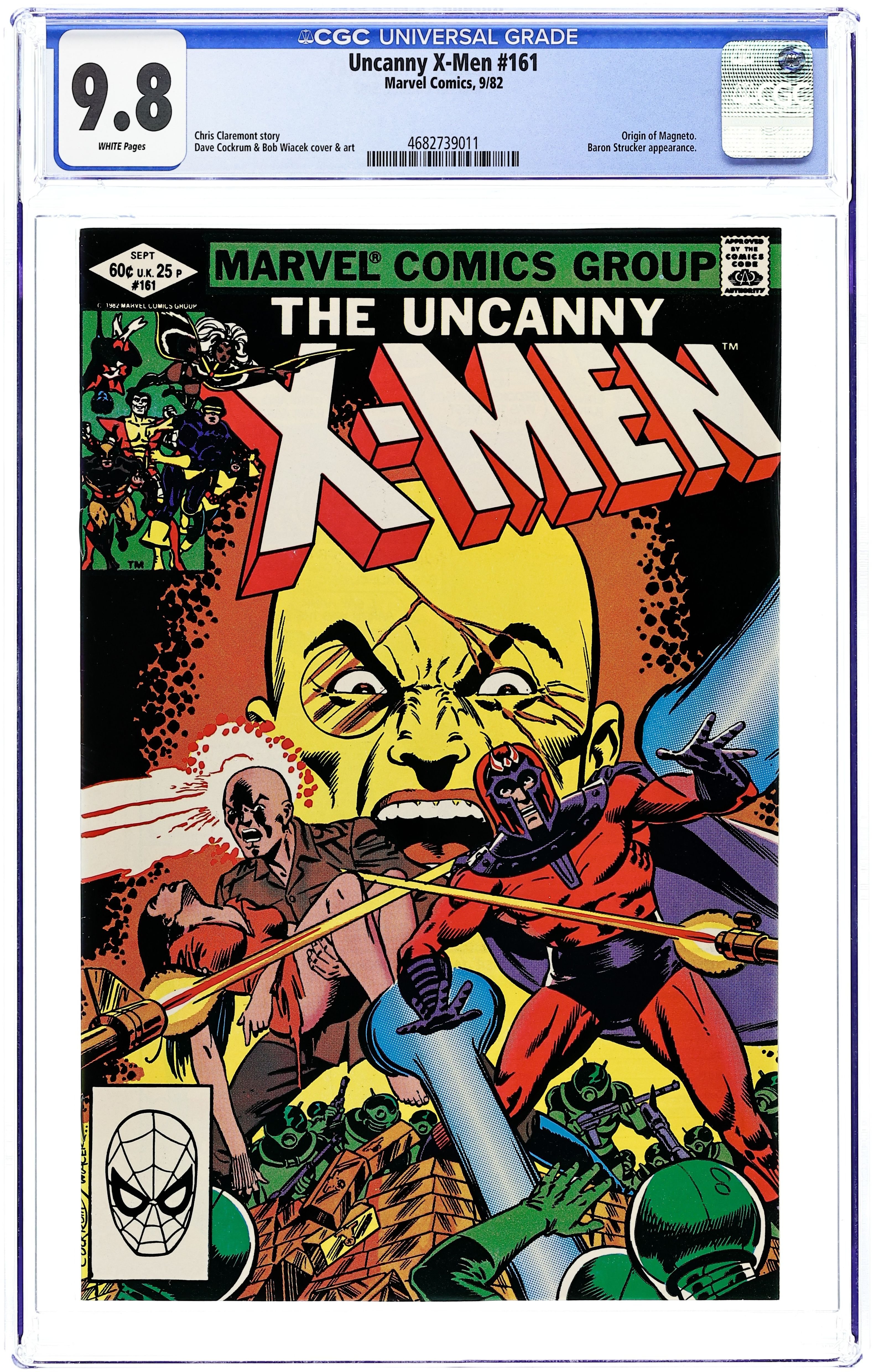 Direct Edition. "Beyond the Farthest Star!" Part 1 of 6. Story by Chris Claremont. Art by Dave Cockrum and Bob Wiacek. The X-Men were ambushed and are now at the mercy of the deadly Shi'ar renegade Deathbird and her sinister accomplices the alien Brood (see the last pages of Uncanny X-Men #161 to see how it happened). Now, the feral X-Man Wolverine fights the battle of his life within and without as a Brood embryo attempts to hatch inside his body, thus killing him and usurping his body and mind - forever! 36 pgs. Cover price $0.60.