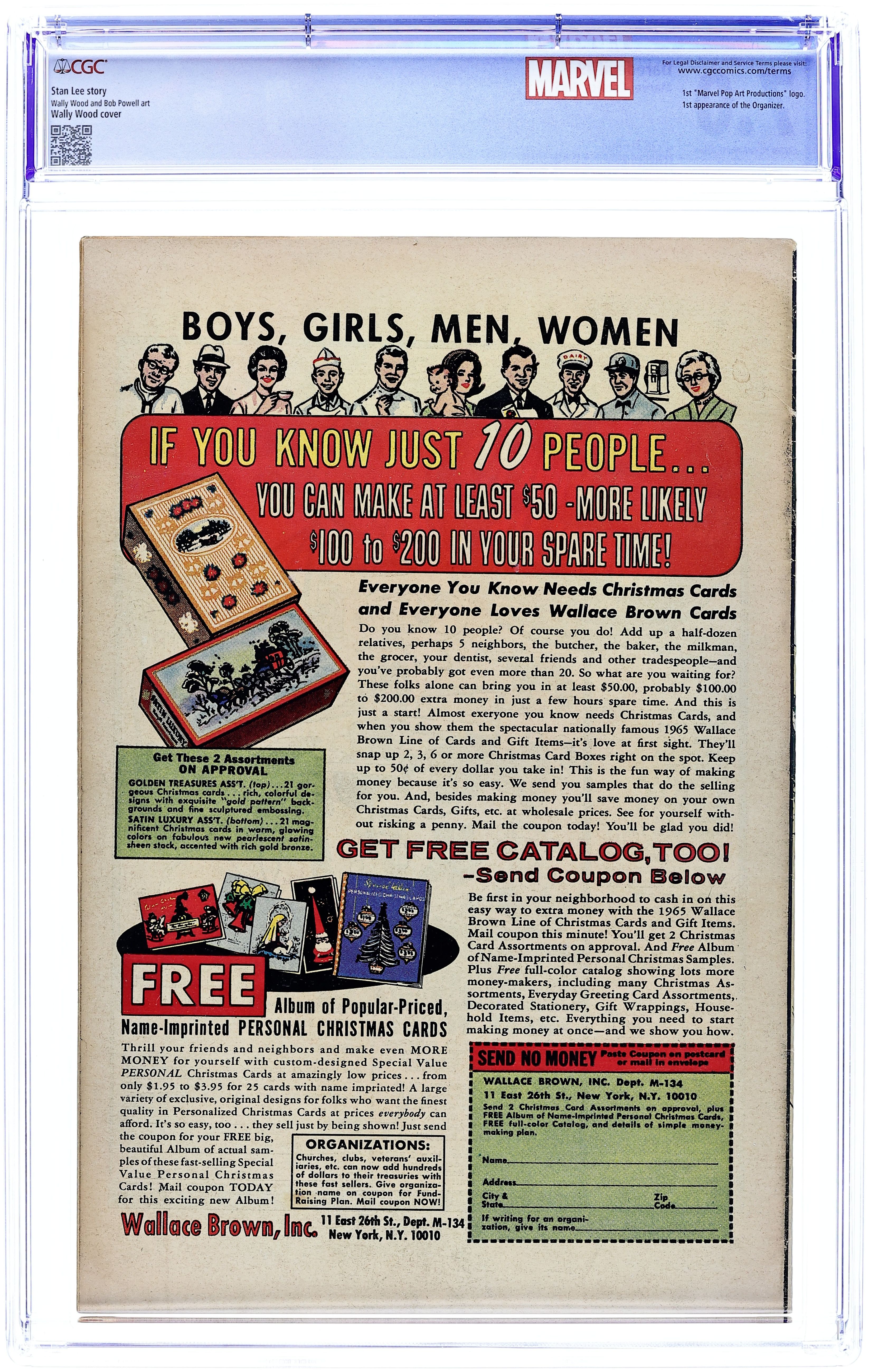 Cover pencils by Bob Powell, inks by Wally Wood. The Organizer returns with Ape Man, Bird Man, Cat Man, and Frog Man in A Time To Unmask!, script by Stan Lee, pencils by Bob Powell, inks by Wally Wood; The case of the Organizer and the Reform Party is wrapped up as mysteries are all solved; Matt takes a leave of absence from the law firm. 36 pgs. Cover price $0.12. Cover price $0.12.