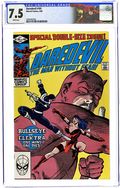 Direct Edition. Last 50-cent issue. Cover pencils by Frank Miller, inks by Klaus Janson. Where Angels Fear To Tread, script by Frank Miller, pencils by Frank Miller (breakdowns) and Klaus Janson (finished art), inks by Klaus Janson; Stick helps his old pupil face his demons and regain his radar sense; The Bugle publishes an expose on Kingpin's candidate for Mayor of New York; Elektra is brought to Kingpin's attention; Daredevil origin retold; Jonah Jameson appearance; cameo by the Hand. 36 pgs. Cover price $0.50. Cover price $0.50.