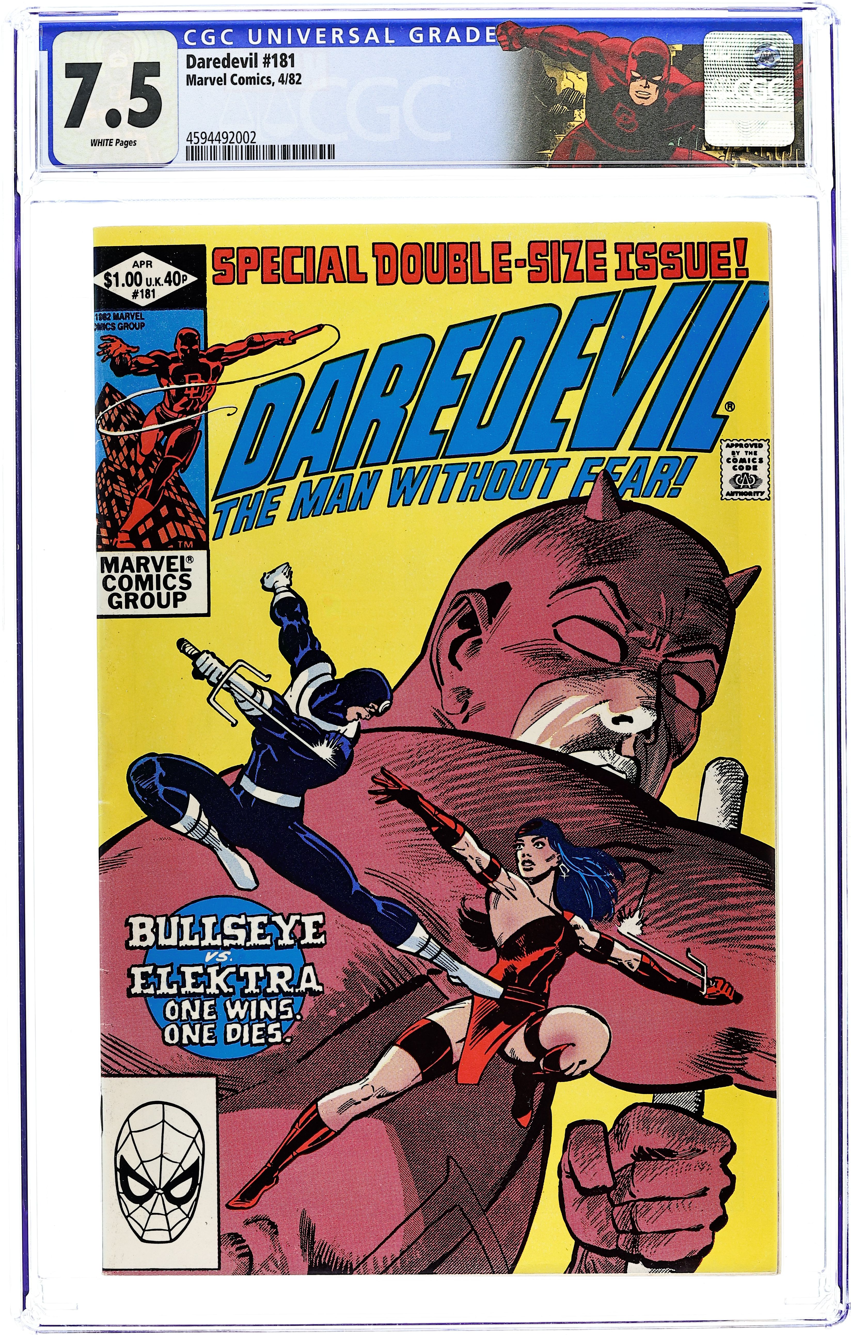 Direct Edition. Cover pencils by Frank Miller, inks by Klaus Janson. The Damned, script by Frank Miller, pencils by Frank Miller (breakdowns) and Klaus Janson (finished art), inks by Klaus Janson; Following the lead on a photo Ben took, DD hunts for the Kingpin's missing wife in the sewers; Cherryh wins the mayoral election, but in exchange for his wife's return, Kingpin makes him concede; Kingpin orders Elektra to kill Foggy in retaliation; begins a chain of events that will result in Elektra's battle with Bullseye in issue 181. Letter to the editor from comics editor Diana Schutz. 36 pgs. Cover price $0.60. Cover price $0.60.