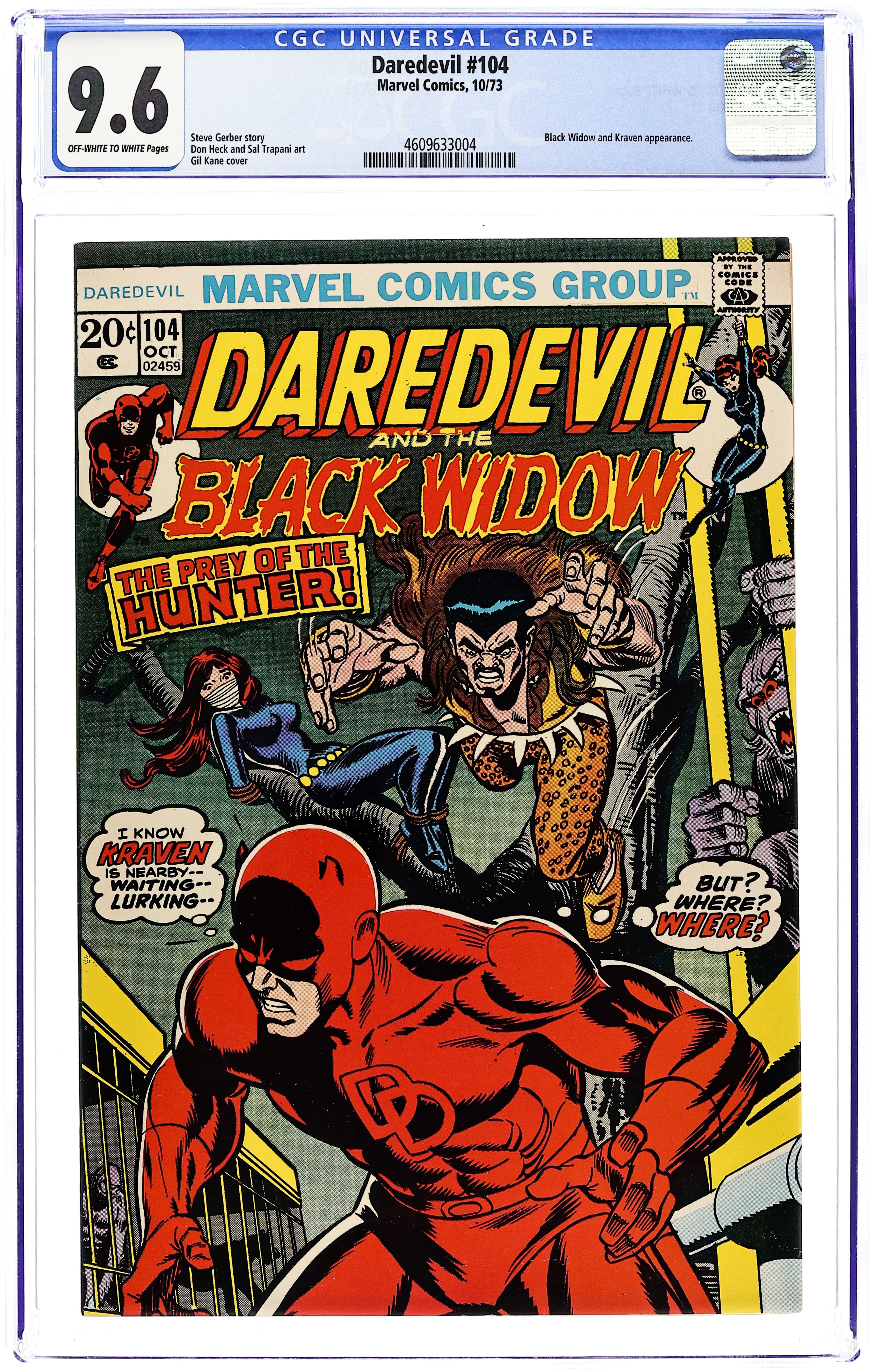 Cover pencils by Gil Kane, inks by Frank Giacoia. Prey of the Hunter!, script by Steve Gerber, pencils by Don Heck, inks by Sal Trapani; "The Man" sends Kraven to kill Daredevil; The villain crashes a party at the home of Kerwin J. Broderick, the senior partner in Matt's law firm, and gets the drop on Daredevil. 36 pages. Cover price $0.20. Cover price $0.20.