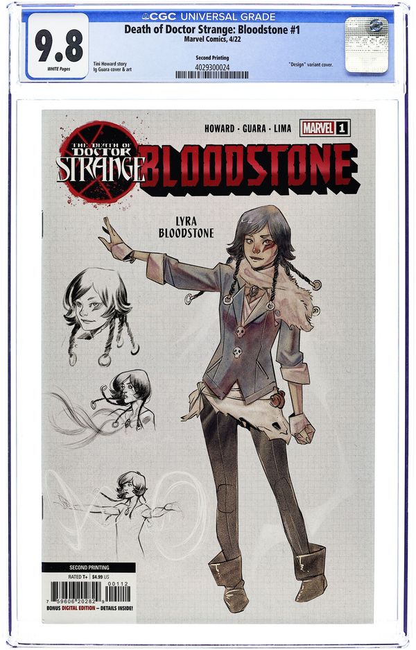 Second Printing. Comics Illuminati (Unknown Comics, Street Level Hero, and Comic Traders) Exclusive Virgin Cover by David Nakayama. Written by Tini Howard. Art by Ig Guara. ELSA AND THE FAMILY BLOODSTONE! Who better to defend Earth from magical invaders than monster hunter ELSA BLOODSTONE?! Elsa is the best there is at what she does - tough, skilled and clever enough to handle any problem…except her brother, CULLEN. They have issues, and they'll have to put them aside not only to protect Earth but also to welcome the latest addition to the Bloodstone clan: their long-lost SISTER! Her awesome set of powers and unique Blood gem have placed a target on her back, and the worst horrors from beyond this realm are on the hunt. 36 pages, full color. Rated T+ Cover price $4.99.