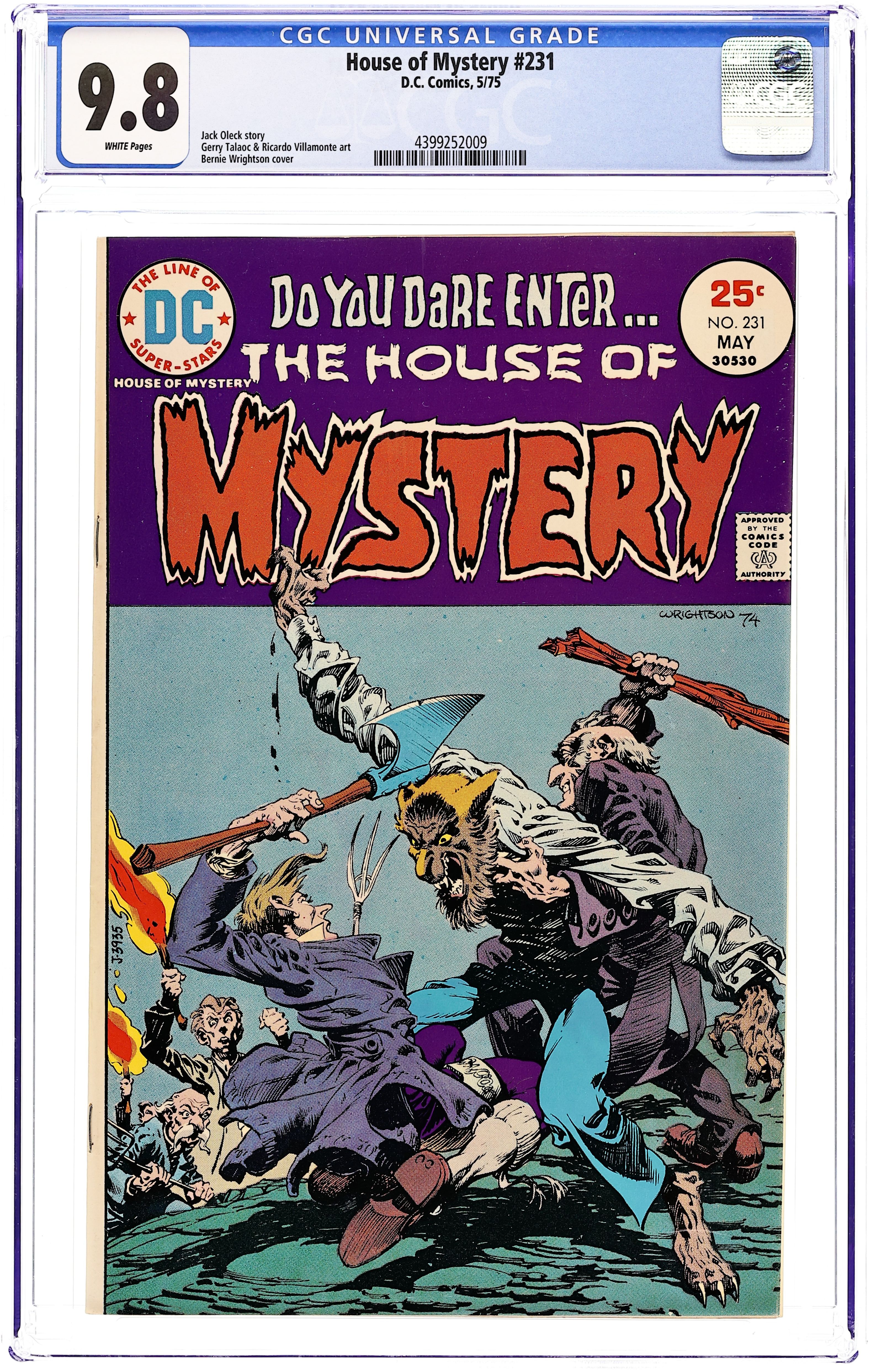 Cover art by Bernie Wrightson. Batman and the Mummy Hostess snack cakes ad. "Way of the Werewolf," script by Jack Oleck, art by Gerry Talaoc; Werewolf Jan Bartok reverts to human form and seeks refuge with a peasant couple, but they turn out to be vampires. DC Makes Comics History ad. "Cold Cold Heart," script by Jack Oleck, art by Ricardo Villamonte; Philip Shaw takes his brother's place in cryogenic suspension, awakening three hundred years later only to find that the human race has been wiped out in an alien invasion and the aliens want to dissect him for scientific research. Statement of ownership; Average number of copies sold during preceding 12 months (total paid circulation): 174,504; Actual number sold for issue nearest filing date (total paid circulation): 194,505. 36 Pages, Full Color. Cover price $0.25.