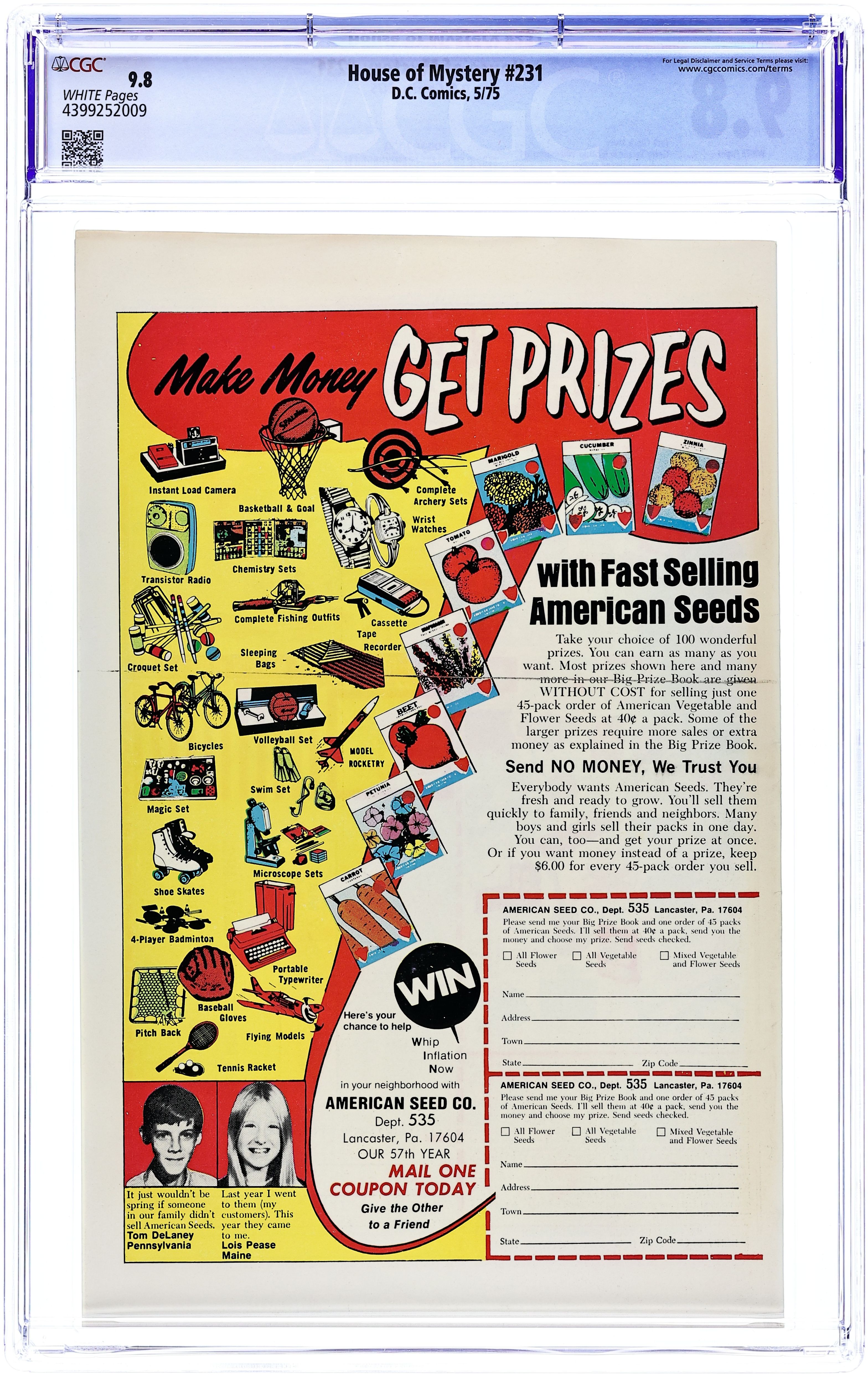 Cover by Joe Kubert. Featuring: 1 page House of Mystery introduction drawn by Howard Bender & John Celardo; 6 page story "Brother Bobby's Home For Wayward Boys and Girls" written by J.M. DeMatteis and drawn by Ruben Yandoc; 6 page story "Farewell Performance" written by George Kashdan and drawn by Noly Zamora; 7 page story "The Comeback of David MacDannon" written by J.M. DeMatteis and drawn by Mar Amongo; 5 page story "The Legal Legacy" written by David Allikas and drawn by Fred Carillo. 36 Pages, Full Color. Cover price $0.50.