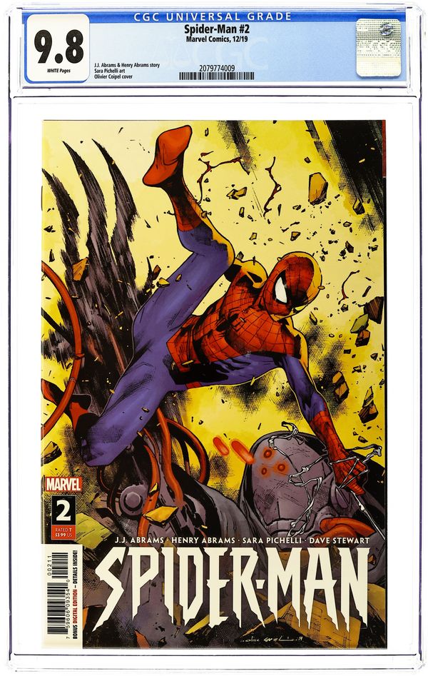 Written by J. J. Abrams and Henry Abrams. Art by Sara Pichelli. Cover by Olivier Coipel. The most anticipated comic event of the year continues from J.J. Abrams (Star Wars, Star Trek, Lost, Alias), Henry Abrams and Sara Pichelli (SPIDER-MAN, GUARDIANS OF THE GALAXY)! Peter and Mary Jane have had their first run in with the new villain Cadaverous and it did not go well. What horrific impact from this horrific villain will scar them the worst?! 32 pages, full color. Rated T Cover price $3.99.