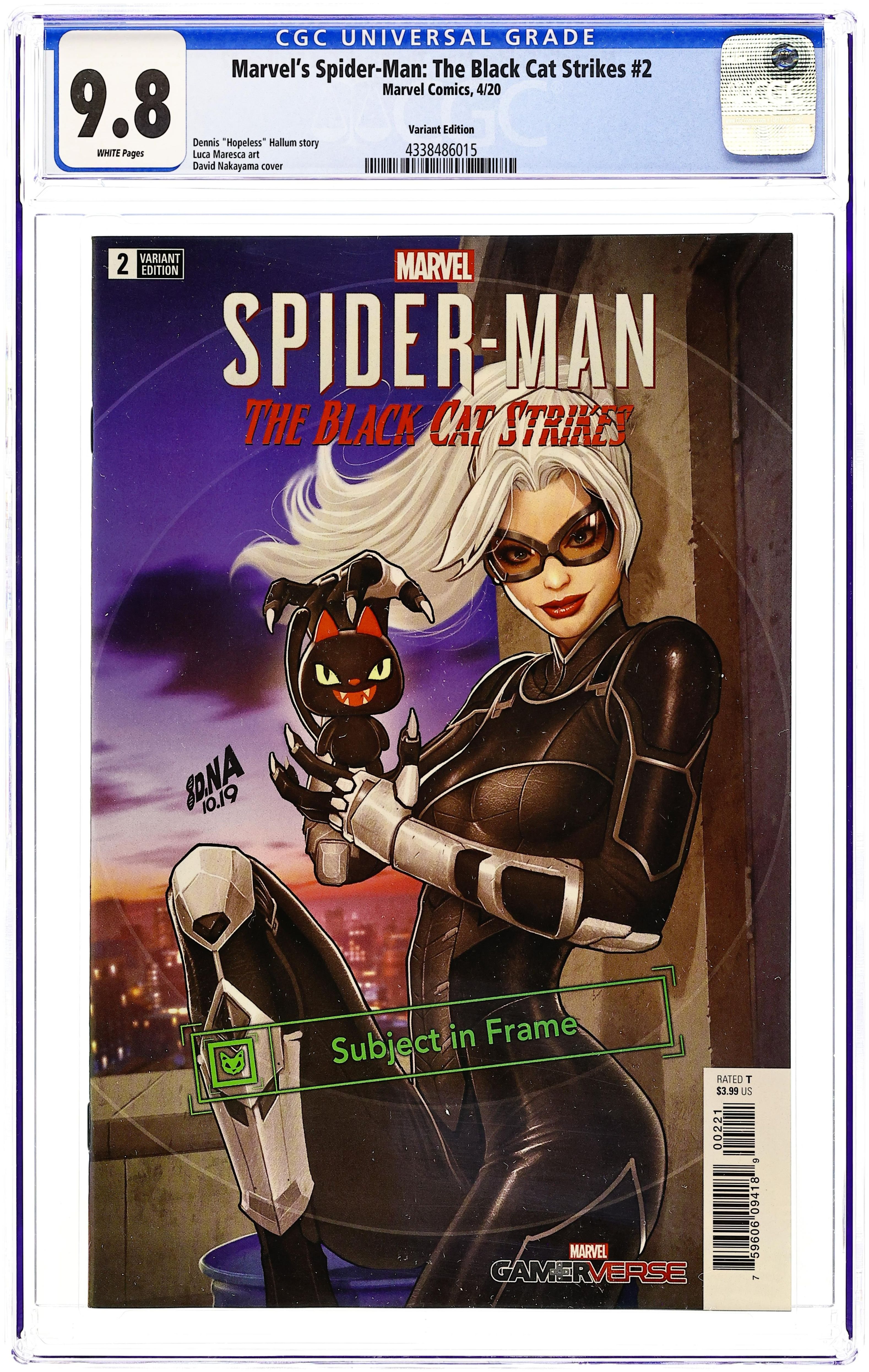 Limited 1 for 25 Retailer Incentive Variant Cover. Written by Dennis "Hopeless" Hallum. Art by Luca Maresca. Cover by David Nakayama. BLACK CAT HEARTS SPIDER-MAN! The BLACK CAT continues her mysterious crime spree in New York… …but will her reappearance catch SPIDER-MAN in a tangled web between MARY JANE and his former flame?! An all-new look into Peter and Felicia's fiery passion and the deadly consequences of a Super Hero romance. ME-OW! 28 pages. full color. Rated T Cover price $3.99.