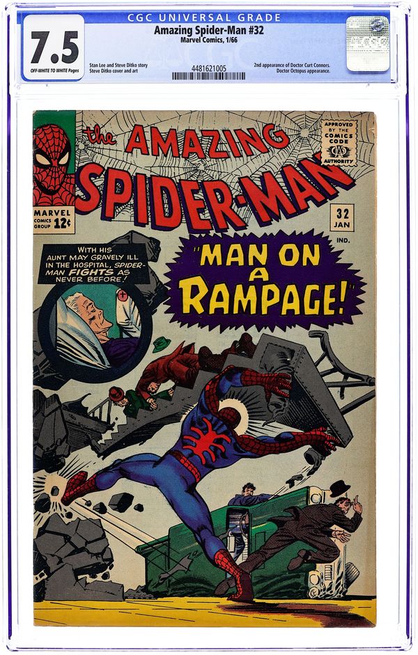 Doctor Octopus (the Master Planner) in "Man on a Rampage." Script by Stan Lee, art and cover by Steve Ditko. In a battle with Doctor Octopus, Spider-Man gets trapped under tons of steel. Reprinted in Marvel Tales # 25 and 171. 36 pgs. Cover price $0.12.