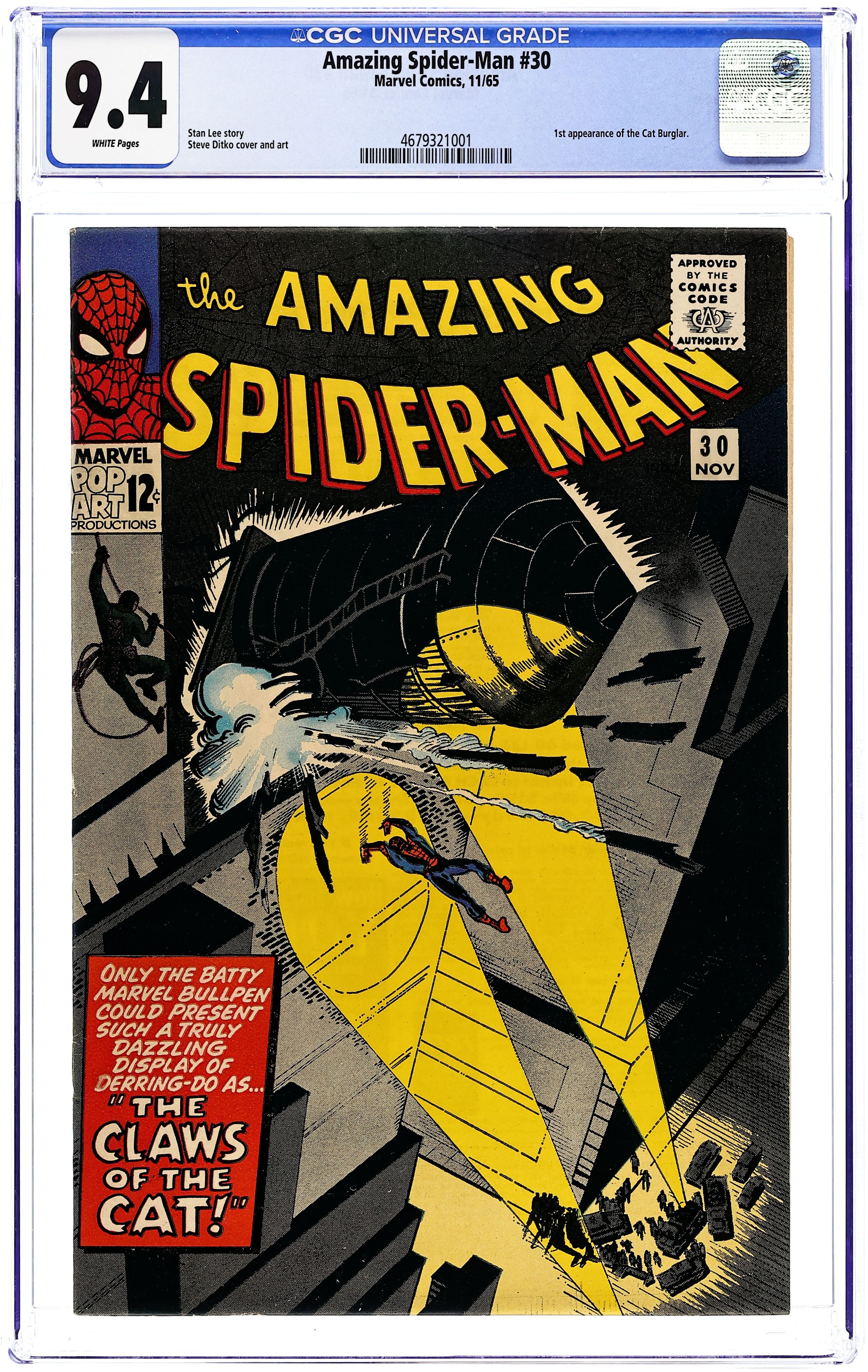 Cover by Steve Ditko. First appearance of the Cat (not the same character who would be introduced in "The Cat" # 1 from 1972 who would later become Tigra). The Claws of the Cat!, script by Steve Ditko (plot) and Stan Lee (script), art by Steve Ditko; Jameson offers a thousand dollar reward for catching The Cat, and Spider-Man plans to collect; Betty tells Peter that Ned has asked her to marry him. Ad for Marvel T-Shirts. A letter from Jack C. Harris. Reprinted in Marvel Tales # 23 and 169. 36 pgs., full color. $0.12. Cover price $0.12.