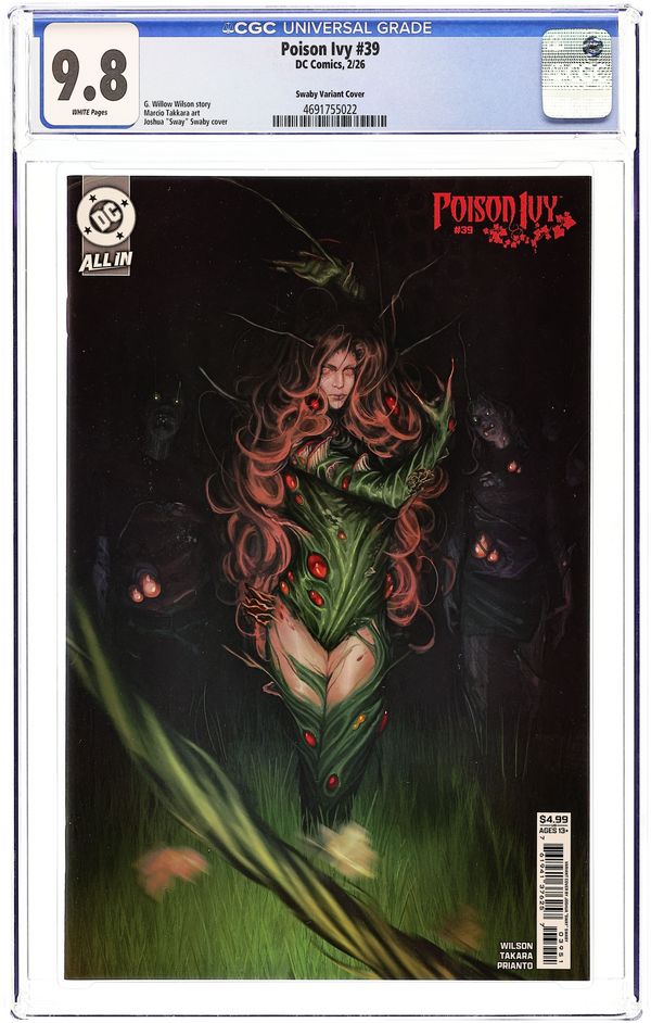 Written by Jessica Berbey. Art by Various. Cover by Lesley Leirix Li. Special AN UNFORGETTABLE GALLERY OF POISON IVY'S GREATEST VARIANT COVERS! Art by Jenny Frison, Joshua Middleton, Warren Laow, Frank Cho, Sozomaika, and others. This gallery of Poison Ivy's greatest variant covers celebrates the first year of the verdant villainess's acclaimed, GLAAD Award-winning ongoing series. 40 pages, full color. Rated T+ Cover price $7.99.