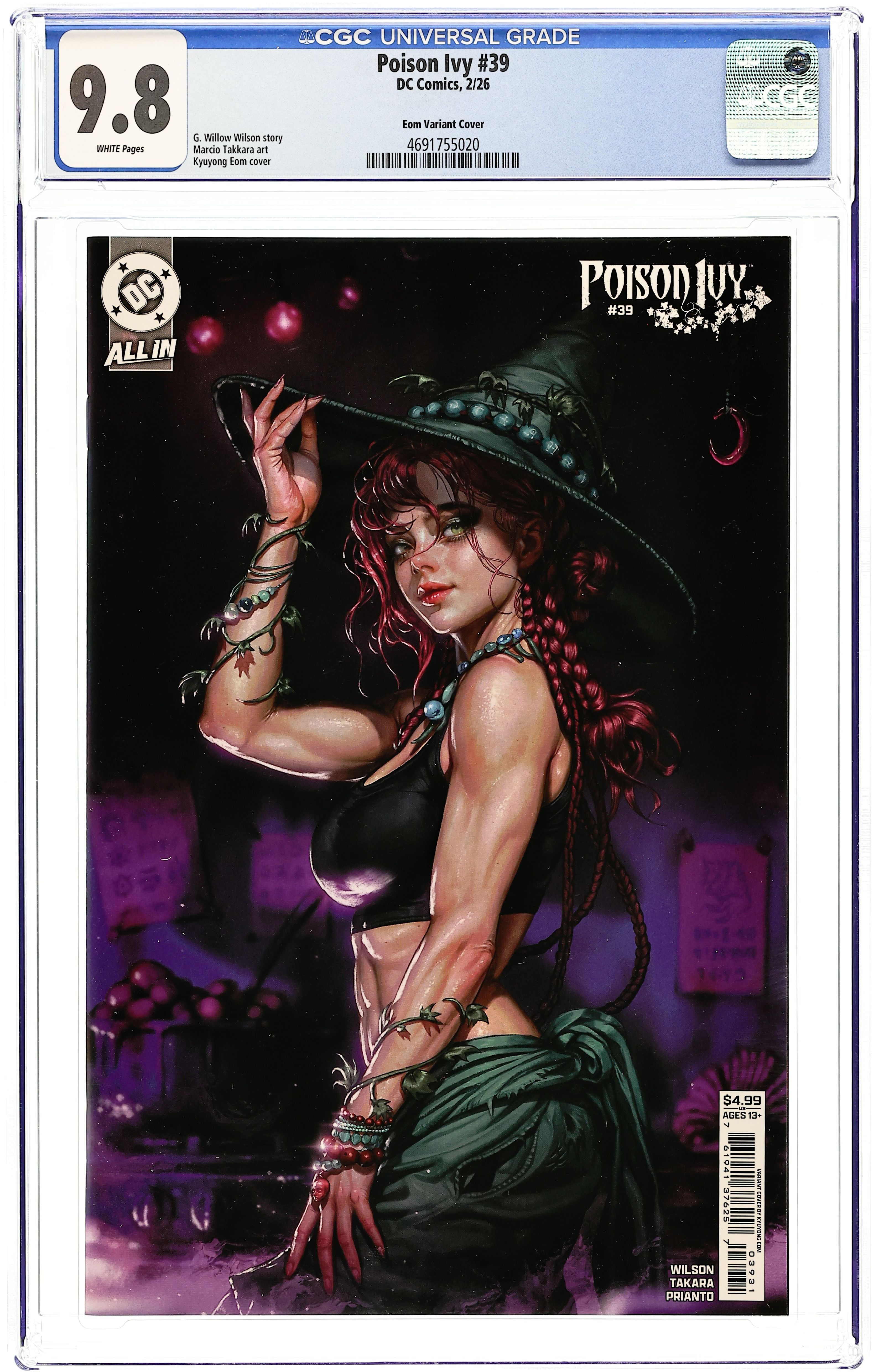 The 616 Comics, Comic Traders, and Big Dex Comics Exclusive Virgin Cover by Cedric Poulat. Written by G. Willow Wilson. Art by Marcio Takara. BATTLE IN SEATTLE! The Order of the Green Knight's leadership hangs in the balance as Poison Ivy and the Gardener go head-to-head in a brutal fight to see who will control the organization and who will be stripped of their power (and perhaps even more). Can Ivy count on her new allies within the Order to have her back, or will they turn on her? 32 pages, full color. Rated T+