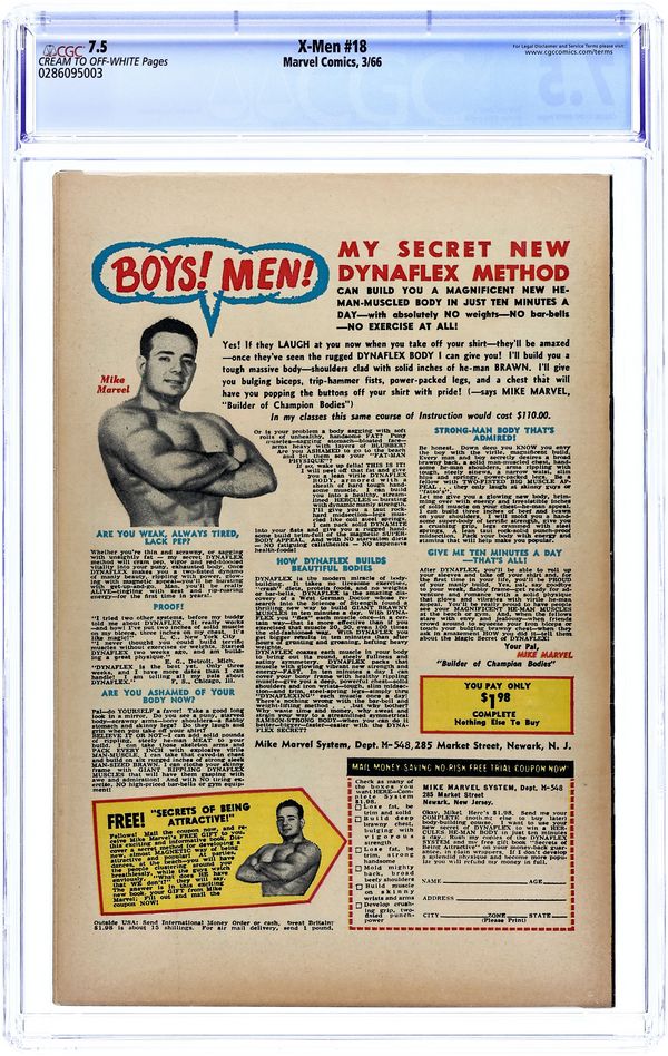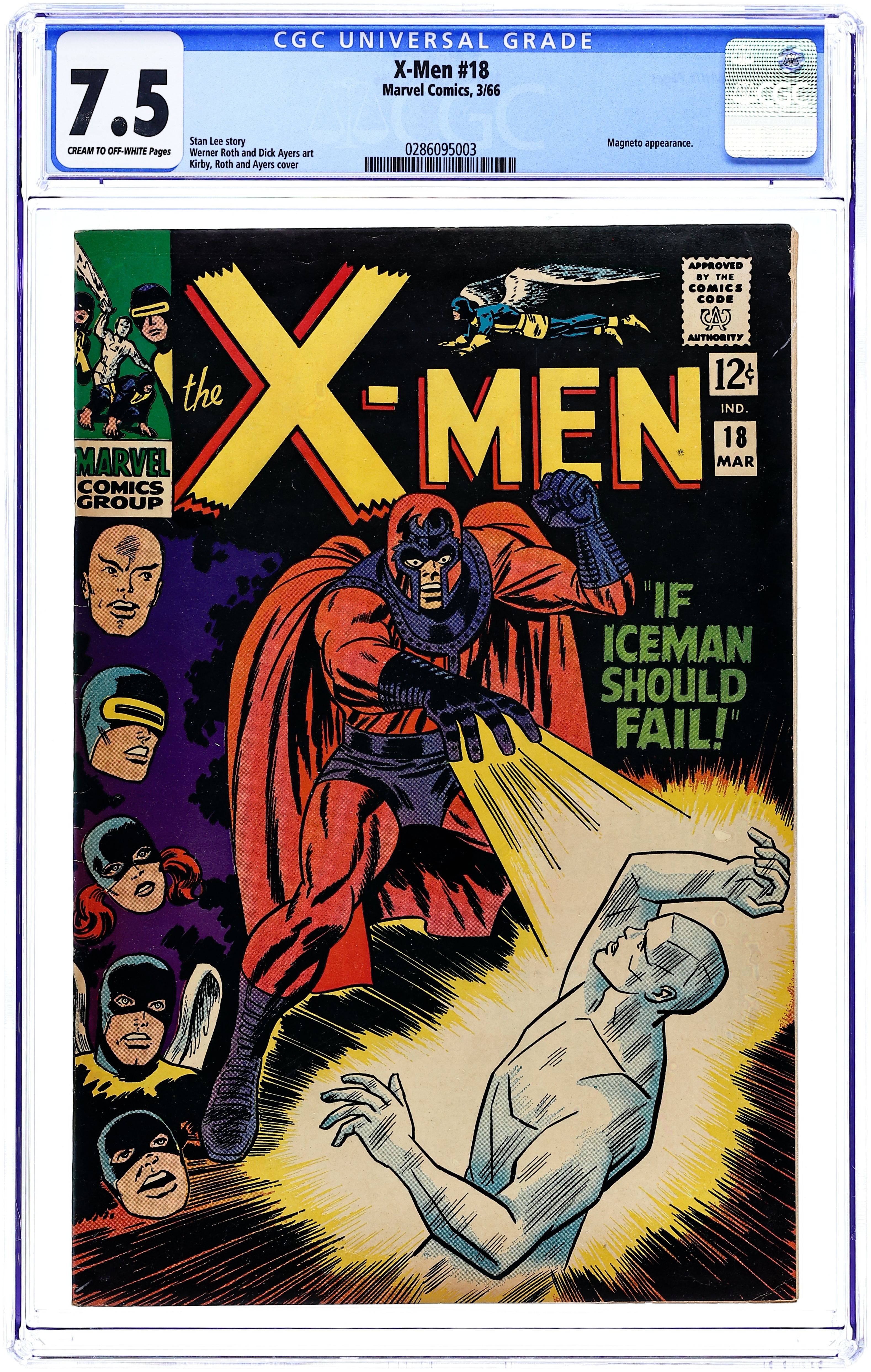 The origin of the Beast. Cover pencils by Jack Kirby, inks by Dick Ayers. Prisoners of the Mysterious Master Mold!, script by Stan Lee, pencils by Jack Kirby (layouts) and Werner Roth [as Jay Gavin] (pencils), inks by Dick Ayers; The X-Men invade the Sentinel's underground complex but are captured; Beast is taken before the Sentinel's leader, Master Mold, and has his mind probed; Master Mold commands Trask to make an army of Sentinels so they can take over the world. 36 pgs. $0.12. Cover price $0.12.