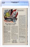 Painted cover by Norman Saunders. Stories and art by Leonard Starr, Frank Giacoia, John Giunta and Paul Parker. Sci-fi and fantasy from Ziff-Davis, edited by the legendary co-creator of Superman, Jerry Siegel. Brad is jealous of Chet for stealing Nina, so he shrinks all three of them with his shrinking invention... but he didn't reckon on the housecat. WWII vet John gets the chance to trade places with his exact duplicate from the year 3951. Col Rulak leads a revolt against the totalitarian world government of "Europa" in the year 2200. A gigantic, floating Cosmic Brain menaces the city. Painted cover by Norman Saunders predates The Incredible Shrinking Man. The Evil Men Do; The Princess of the Future; Blood Stands for Freedom; The Cosmic Brain!; Escape on a Planetoid; The Steel Monster. 32 pages, Full Color. Cover price $0.10.