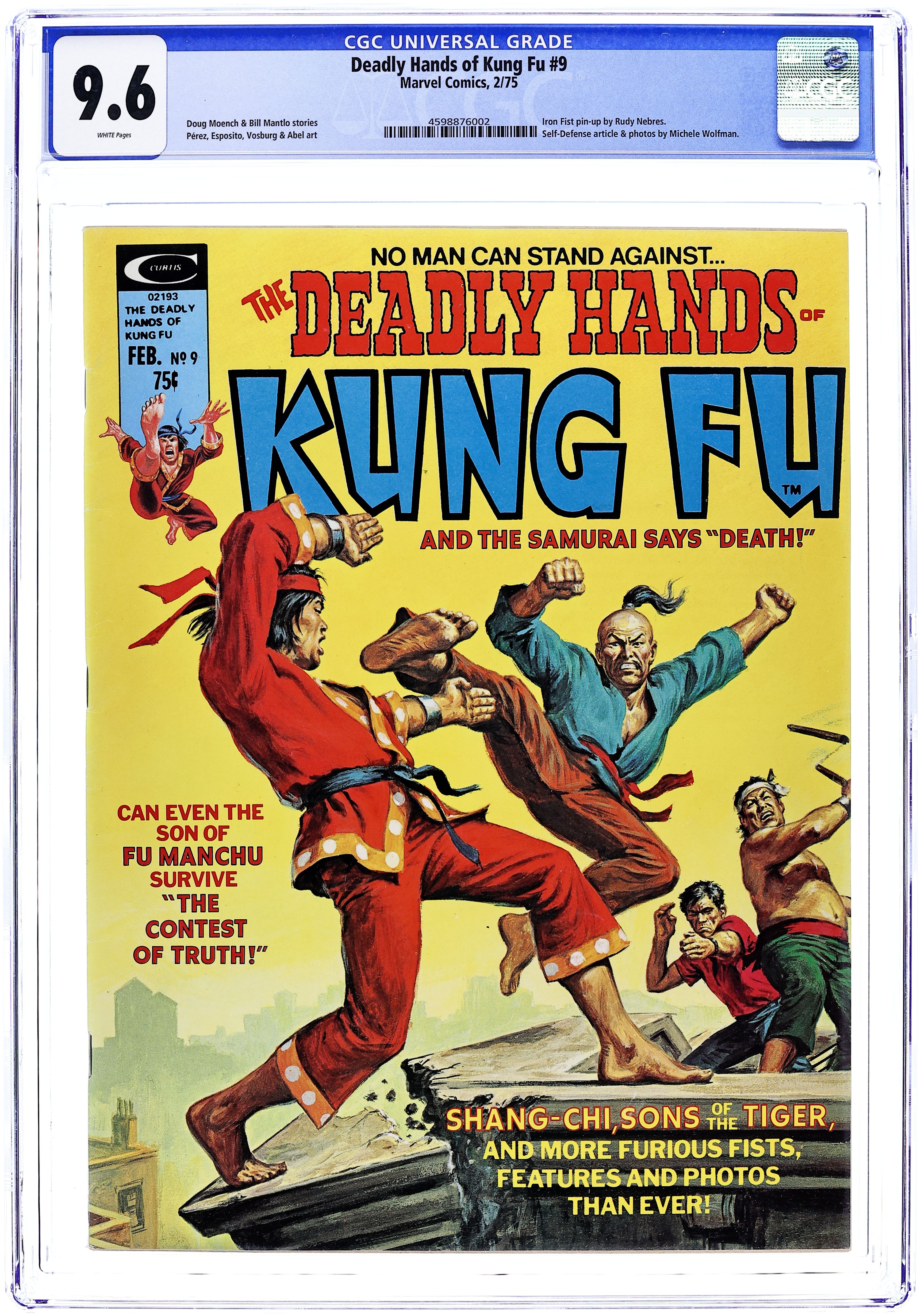 Stan Lee Presents: The Deadly Hands of Kung Fu Special Album Edition. Cover by Harold Shull. Includes: "The Rising and advancing of a Spirit!" An editorial by Tony Isabella. Shang Chi, the Master of Kung Fu, Iron Fist, and the Sons of the Tiger star in "The Master Plan of Fu Manchu!" Prologue. Story by Tony Isabella. Art by John Buscema. Chapter 1: Iron Fist. Story by Doug Moench. Art by Frank McLaughlin. "Kaii-Yaahhh!" An exclusive look at Fred Hamilton's All-Dojo Tournament by John Warner and Mary Skrenes. "Fu Manchu, Sax Rohmer, and Shang Chi!" An article by David Kraft. Chapter 2: Sons of the Tiger! Story by Chris Claremont. Art by Herb Trimpe. "The Chinese Machine!" A movie review of the film starring Barry Chan by John Warner. "Shaolin Flashback!" An exclusive look at the Shaolin Monks by Malachi Ronin. Chapter 3: Shang Chi, the Master of Kung Fu. Story by Doug Moench. Art by Mike Vosburg and Dan Adkins. Epilogue. Story by Tony Isabella. Art by John Buscema. 82 pages, black and white. Cover price $1.00.