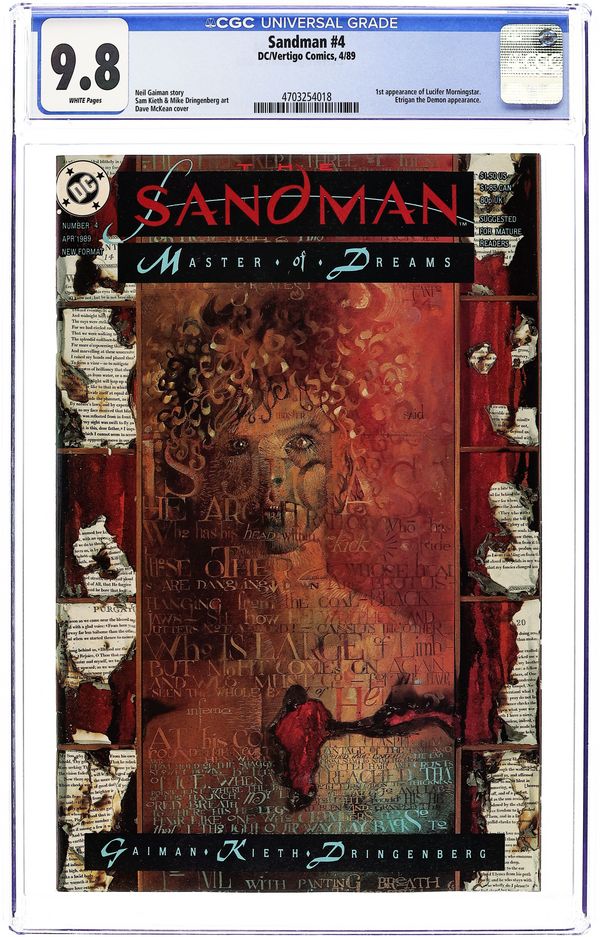 The Sandman journeys into the depths of hell to battle a demon for possession of his stolen mystical helmet. Written by Neil Gaiman, with art by Sam Kieth and Mike Dringenberg. Painted cover by Dave McKean. Suggested for Mature Readers. New Format. Cover price $1.50.