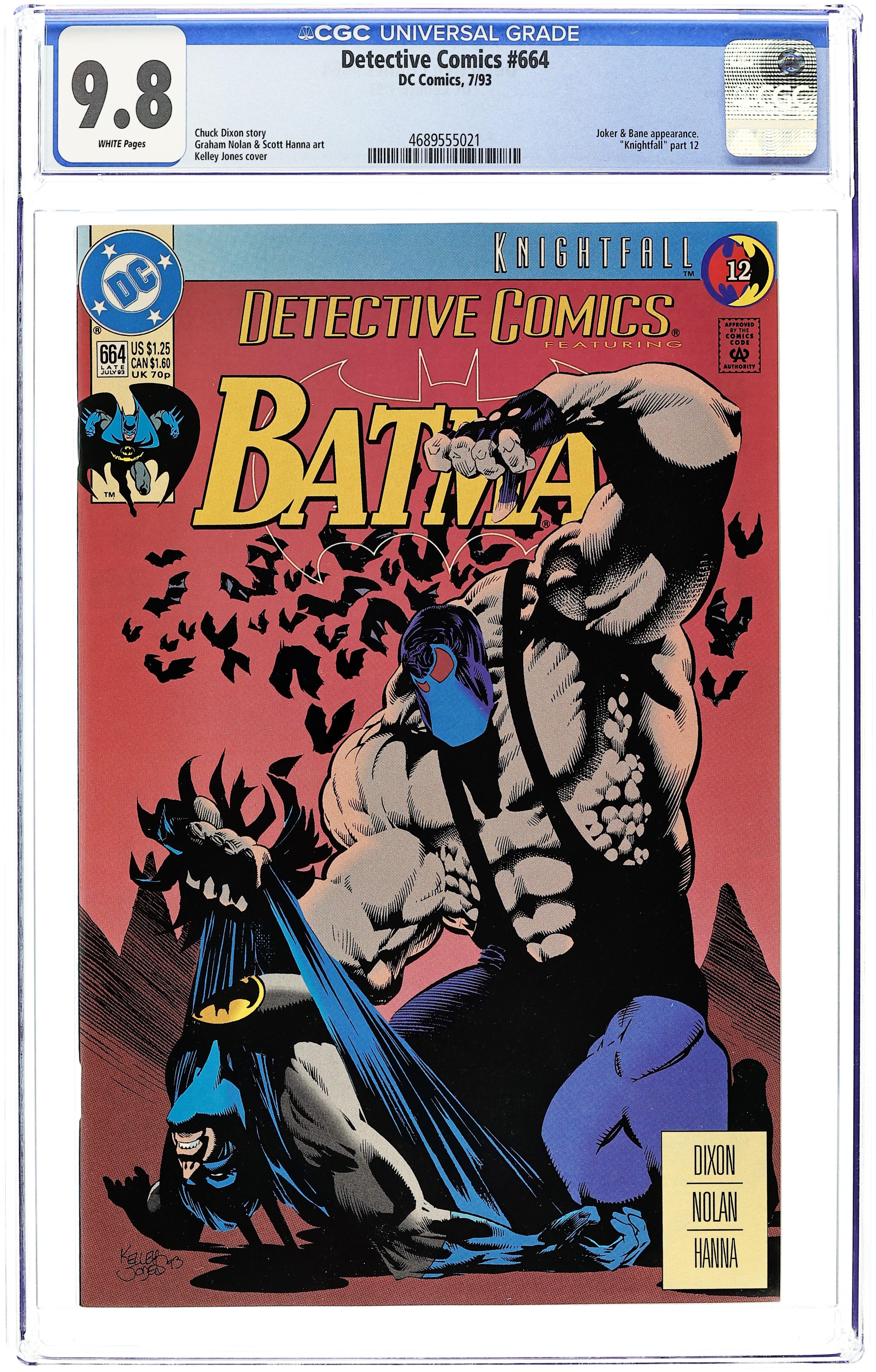 Knightfall: Chapter 12. Story by Chuck Dixon. Art by Graham Nolan and Scott Hanna. Cover by Kelley Jones. Story continued from Batman # 497. The diabolical man-brute known as Bane has broken the Batman. His back broken and left for dead, Batman is in no shape to stop Bane from taken Gotham for himself. Who will take up the fight? 36 pgs. Cover price $1.25.