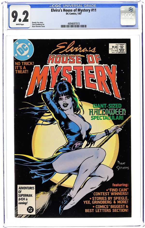 Direct Edition. Cover by Dave Stevens! Not only is this the spectacular final issue of horrordom's spookiest comic - not only does it feature double-sized stories and chills - not only does it contain the winners in our great 'Find Cain Contest' - not only does it feature comics' biggest and best letters section - but it's also got a cover of Elvira by Dave Stevens that's got to be seen to be believed! Howl! And that's not all - dare to look within for tales by Gene Colan, Tom and Mary Bierbaum, Dan Spiegle, Dennis Yee, Tom Grindberg and Gerry Talaoc! Cover price $1.25.