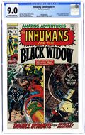 Cover pencils by John Buscema, inks by John Verpoorten. "His Brother's Keeper!", script by Roy Thomas, pencils by Neal Adams, inks by Tom Palmer; Black Bolt realizes that Maximus has gained the power to blank men's minds and thus encases him within a stasis container and then leaves for America; The first group of people he comes across are criminals who are attempting to get a small boy to climb in through a building window and unlock it to burglarize it; Black Bolt easily defeats the criminals and aids the injured boy; Meanwhile, Gorgon and Karnak think their leader has gone too far in entombing Maximus and attempt to free him. "And To All a Good Night," script by Roy Thomas, pencils by Gene Colan, inks by Bill Everett; The Astrologer's goons are after a hippie from Utah, who knocks the Astrologer's henchmen who was attacking the Black Widow off a building with him. Letter to the editor from comic editor Paul Levitz. 36 pgs, full color. $0.15. Cover price $0.15.