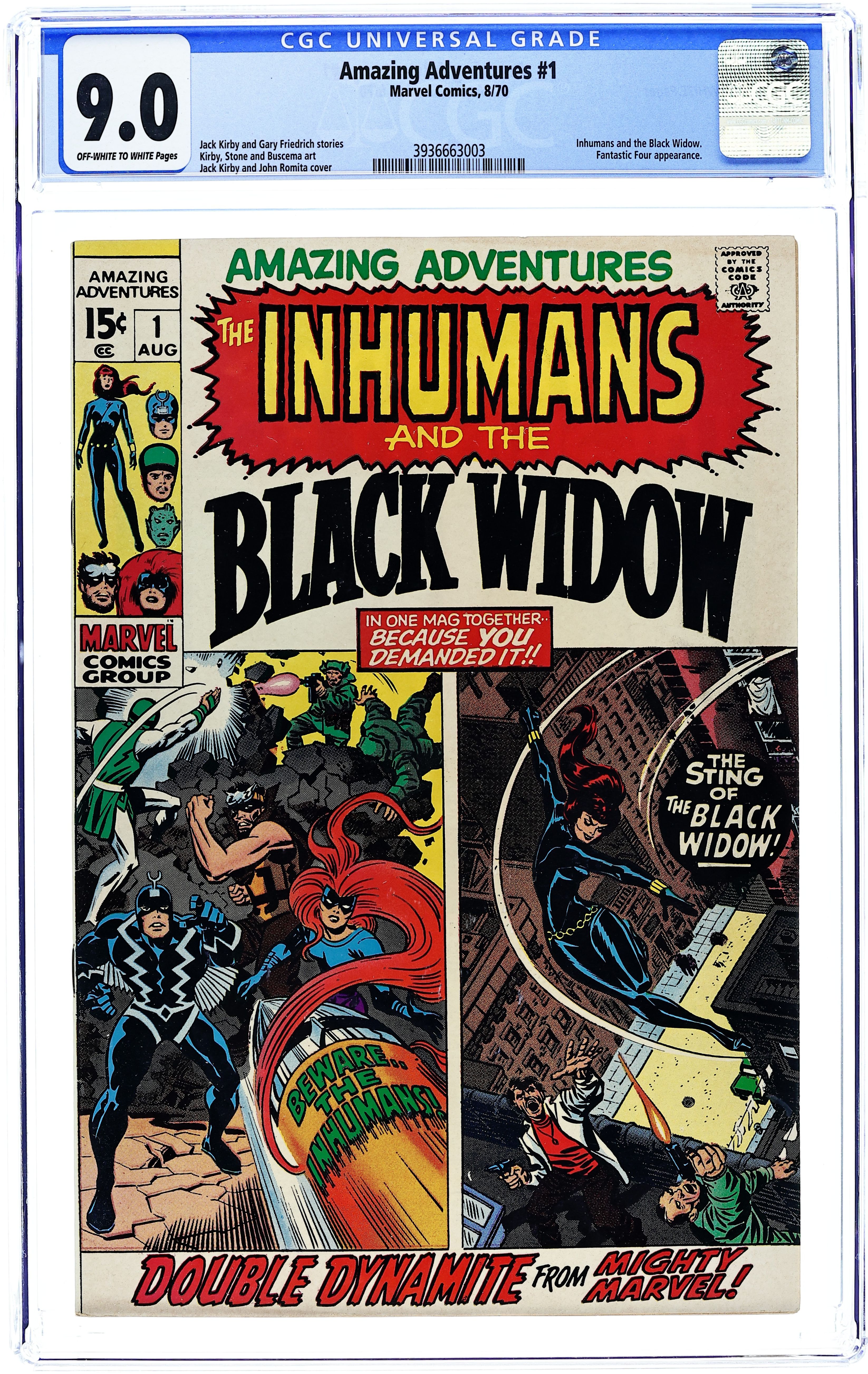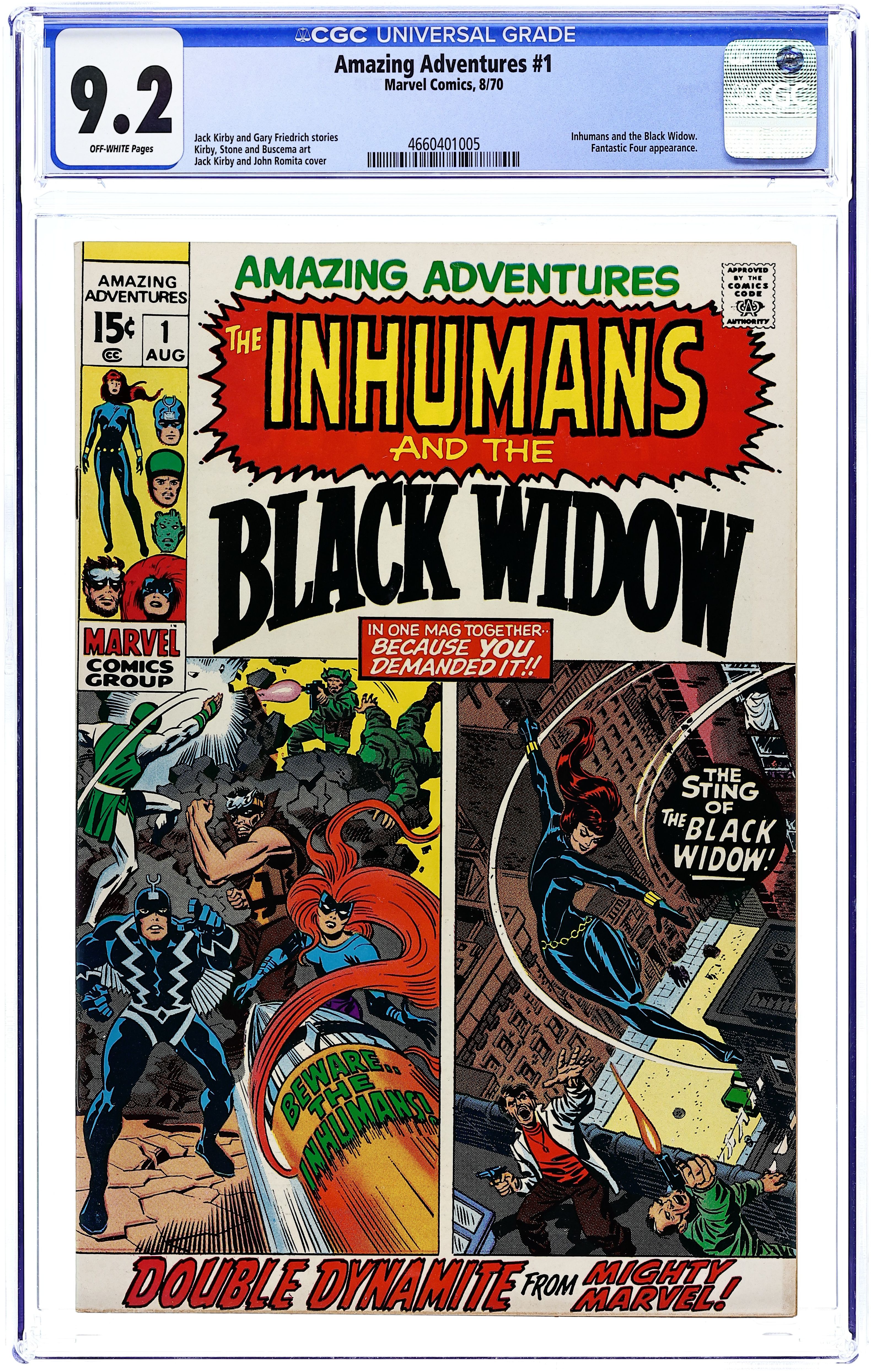 Cover by Neal Adams. "An Evening's Wait For Death!", script by Gerry Conway, pencils by Neal Adams, inks by John Verpoorten; Mr. Dibbs recruits Black Bolt to bring down rat-shack tenements while the royal family heads out to San Francisco to see what's become of him. "The Sting of the Widow!", script by Gerry Conway, pencils by Don Heck, inks by Bill Everett; The Black Widow visits Avengers Mansion, then defeats the Astrologer; Goliath (Clint Barton) cameo. 36 pgs, full color. $0.15. Cover price $0.15.