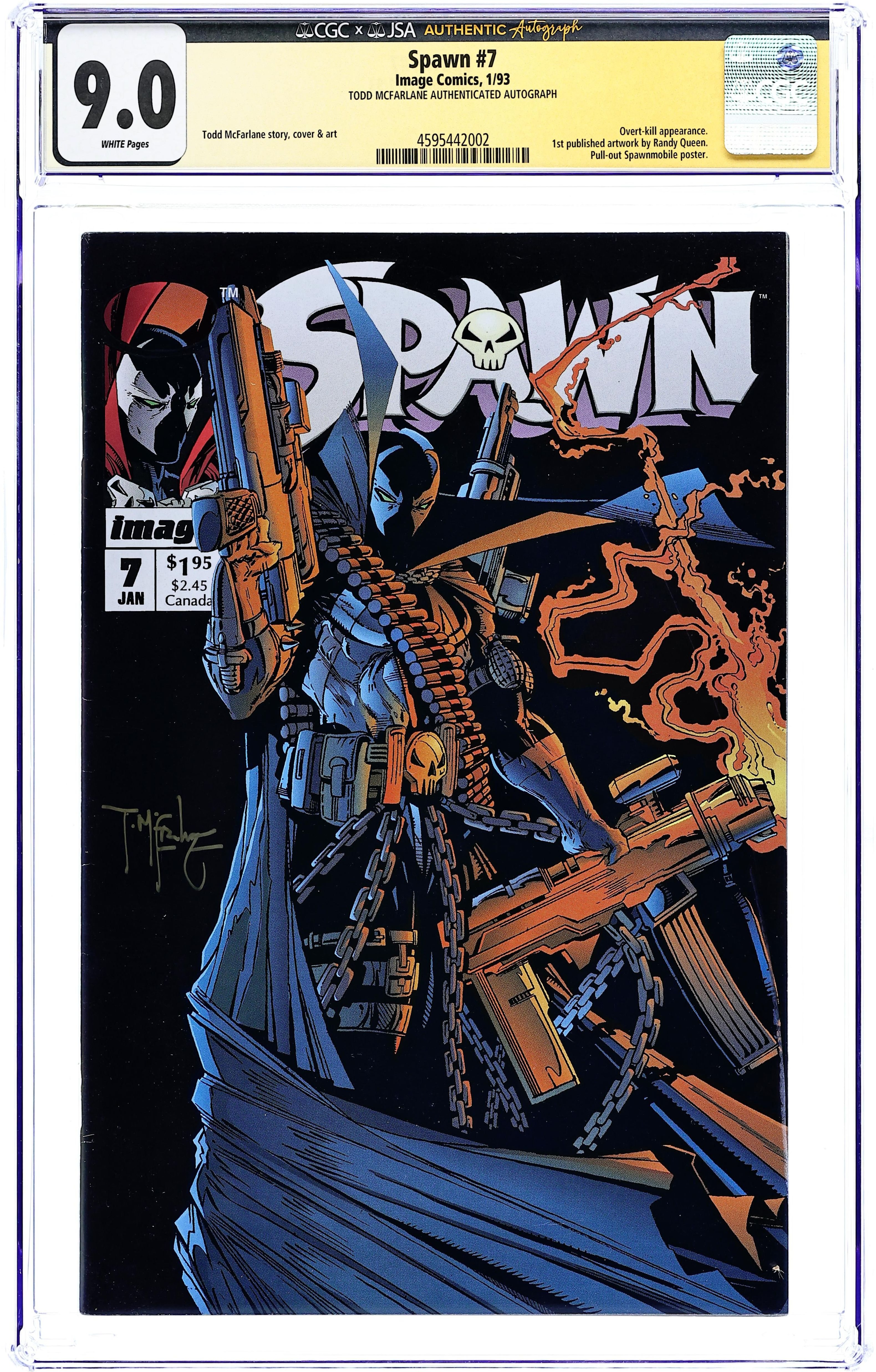 Newsstand Edition. "Payback!" Part 1 of 2. 1st appearance of Overtkill. Created, story, and art by Todd McFarlane. Mafioso boss, Tony Twist, blames the new shadowy hero, Spawn, for the resent attacks on his men. Twist wants Spawn dead. Twist is a man who is used to getting what he wants. Enter: Overtkill, a cyborg killing machine who never fails. NOTE: Overtkill was created on an art training video featuring Stan Lee, Todd McFarlane, and Rob Liefeld. When Lee came up with the name "Overkill," Liefeld and McFarlane, using only the name, and within a matter of minutes, came up with the basic design for the character that would soon be known as Overtkill, a major villain in the Image Universe. - Odinson, Lone Star Comics Archivist Cover price $1.95.