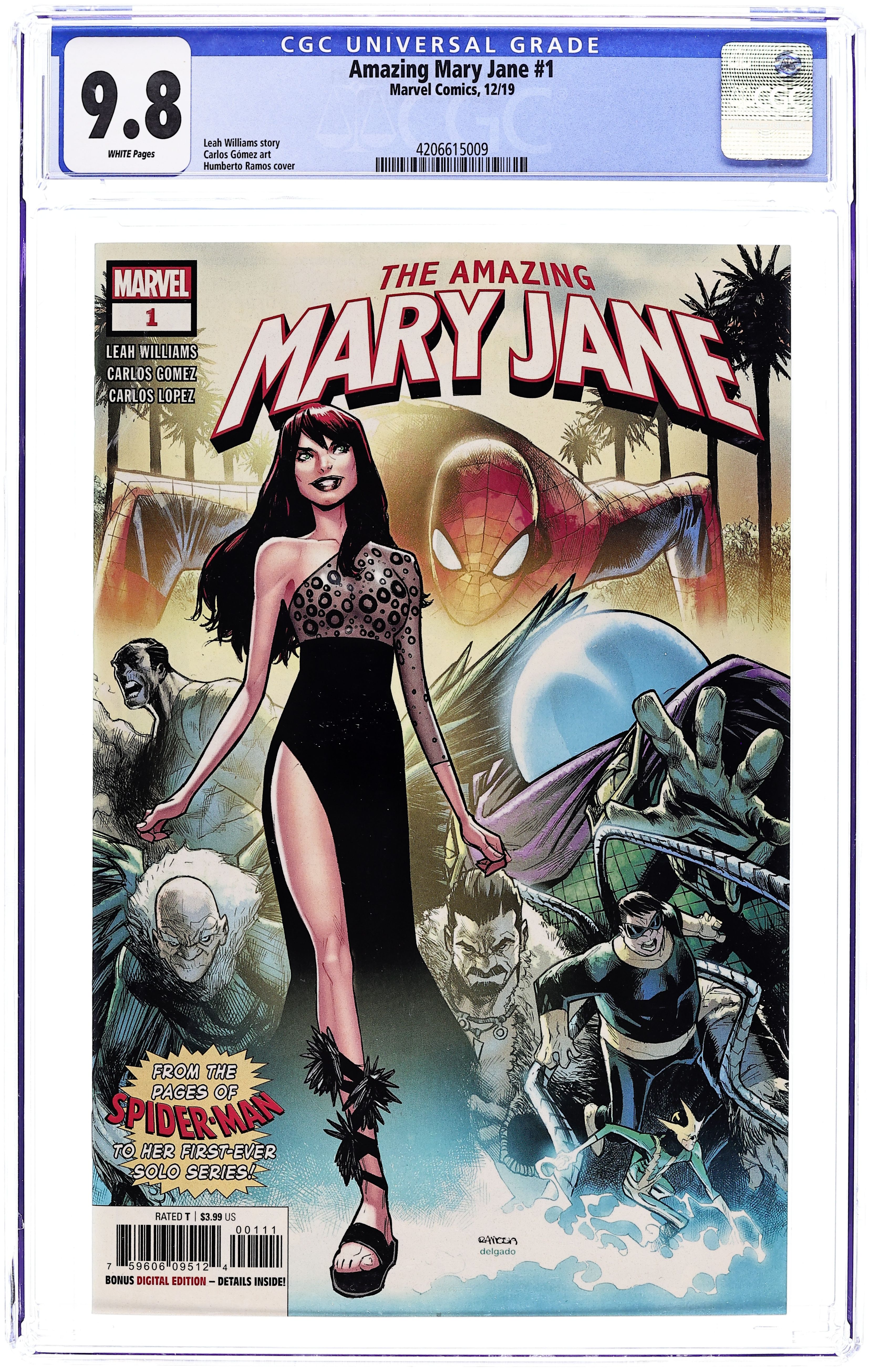 Written by Leah Williams. Art by Carlos E. Gomez. Cover by Humberto Ramos. SPINNING RIGHT OUT OF THE PAGES OF AMAZING SPIDER-MAN! 'YOU JUST HIT THE JACKPOT!' ALL-NEW ONGOING SERIES! The web-head's favorite redhead (and yours!) is taking a chance on her dreams. But if you've read ASM #25, you'll know MYSTERIO is behind Mary Jane's big shot, and someone worse is behind him! What's real and what's illusion, what's illusion and what's Hollywood phoniness? This fall, Leah Williams (AGE OF X-MEN: EXTREMISTS; GIANT MAN) and Carlos Gomez (UNCANNY X-MEN ANNUAL, Red Sonja) bring you all this intrigue plus more action, glamor, grit, and - we'll say it - sass than anyone's previously dared fit in five fabulous issues! Face it: you don't wanna miss this! 28 pages, full color. Rated T Cover price $3.99.