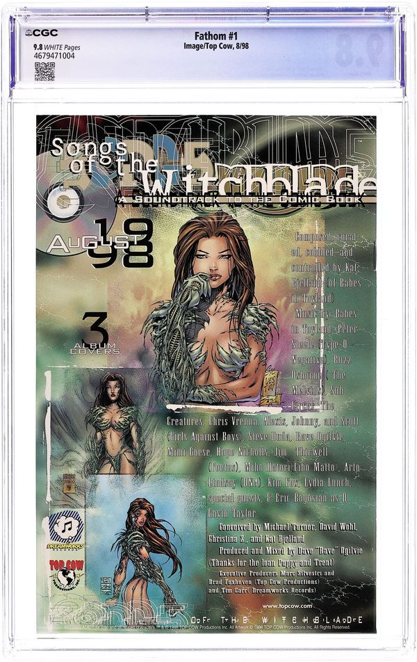 NON-WIZARD EDITION Top Cow Comics (W) Michael Turner (P) Michael Turner (I) Joe Weems (C) Jonathan D. Smith Top Cow is proud to re-present the hard to find zero issue of Michael Turner's first creator-owned series, Fathom! Venture into the mighty depths to explore a vast new world as we follow the adventures of Aspen Matthews in her search for the key to unlock the mysteries of her past. Plus, gain some insight to the underwater race that will change the course of Aspen's life forever! This special issue also features behind the scenes sketches and a brand-new cover by series creator, Michael Turner! FC, 24pg" Cover price $2.50.