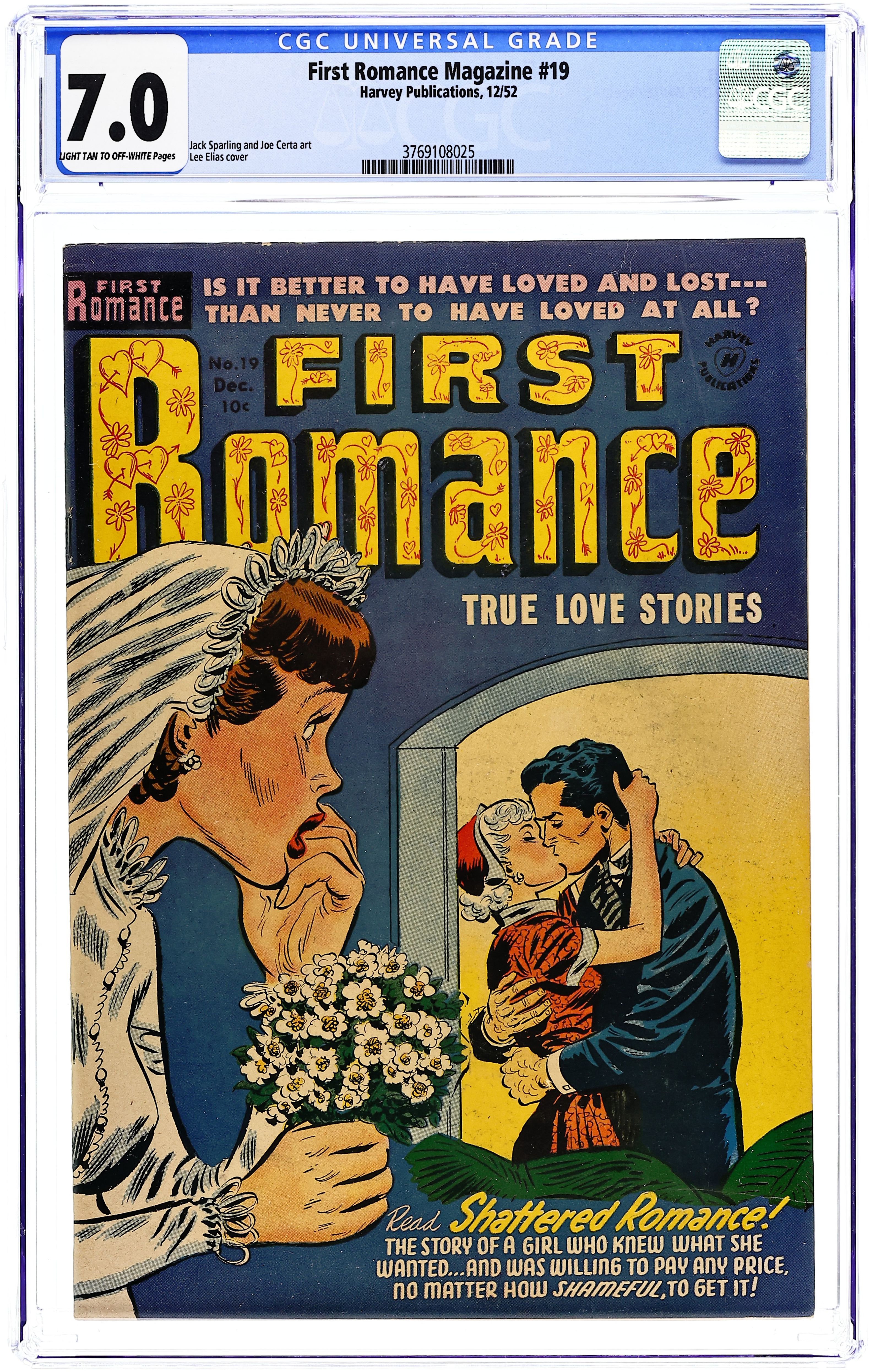 Cover by Lee Elias. Stories and art by Jack Sparling, Al Avison, Joe Certa and John Belfi. Tales of love and heartbreak in 1950s America from publisher Harvey. Arlene opportunistically takes whatever she wants, including kissing her friend Fran's fiance Brad on their wedding day. Jan sets her sights on handsome boss Dick, but first she must reckon with his fiancee Elaine and his strange mood swings. Shattered Romance; My Strange Rival; Heart Divided; Flaming Passion; Half a Love; Secret Affair. 36 pages, full color. Cover price $0.10.