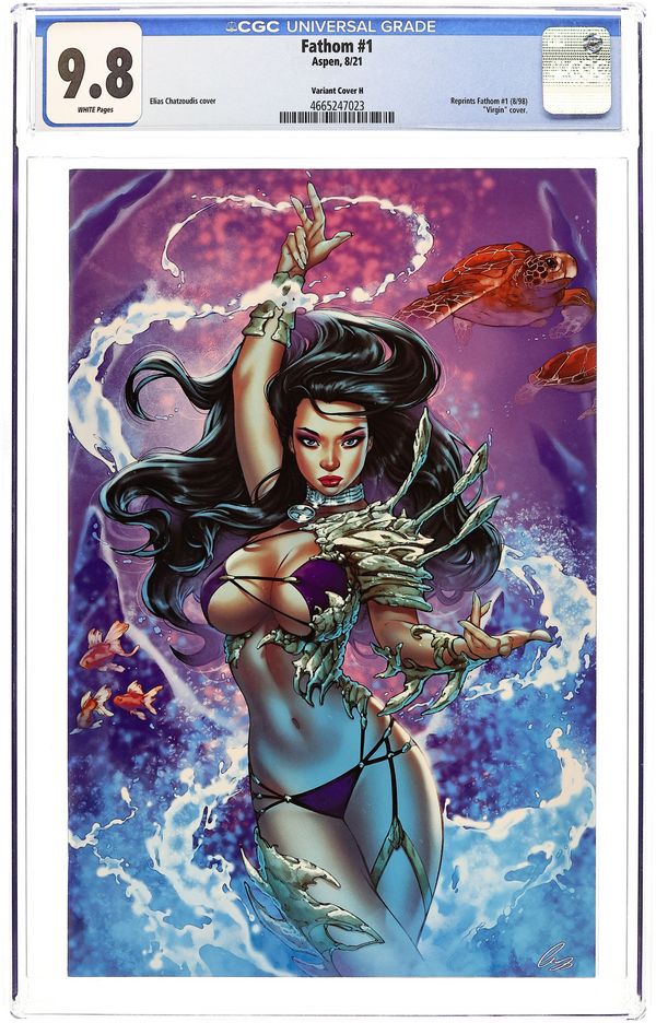 Encounter Comics and Games Exclusive Variant Cover by Alex Konat - Limited to 750 copies. (W) David Wohl (A) Alex Konat A new direction in the FATHOM Universe begins! Michael Turner's best-selling series has reached its milestone 15-year anniversary! However, Aspen Matthews' adventure under the surface has no plans of slowing down! Following the devastating events of 'The Elite Saga', Aspen Matthews finds herself at a decisive crossroads in her life-with the memories of her past no longer weighing her down, she is finally able to set about building a new life in San Diego once more. But, being the daughter of two worlds is no easy feat-and Aspen will quickly discover the winds of change oftentimes lead directly into the perils of fate! The ALL NEW FATHOM starts right here! Writer David Wohl, artist Alex Konat and colorist Beth Sotelo team up once again to bring you the latest adventures of Michael Turner's most beloved creation! Cover price $1.00.