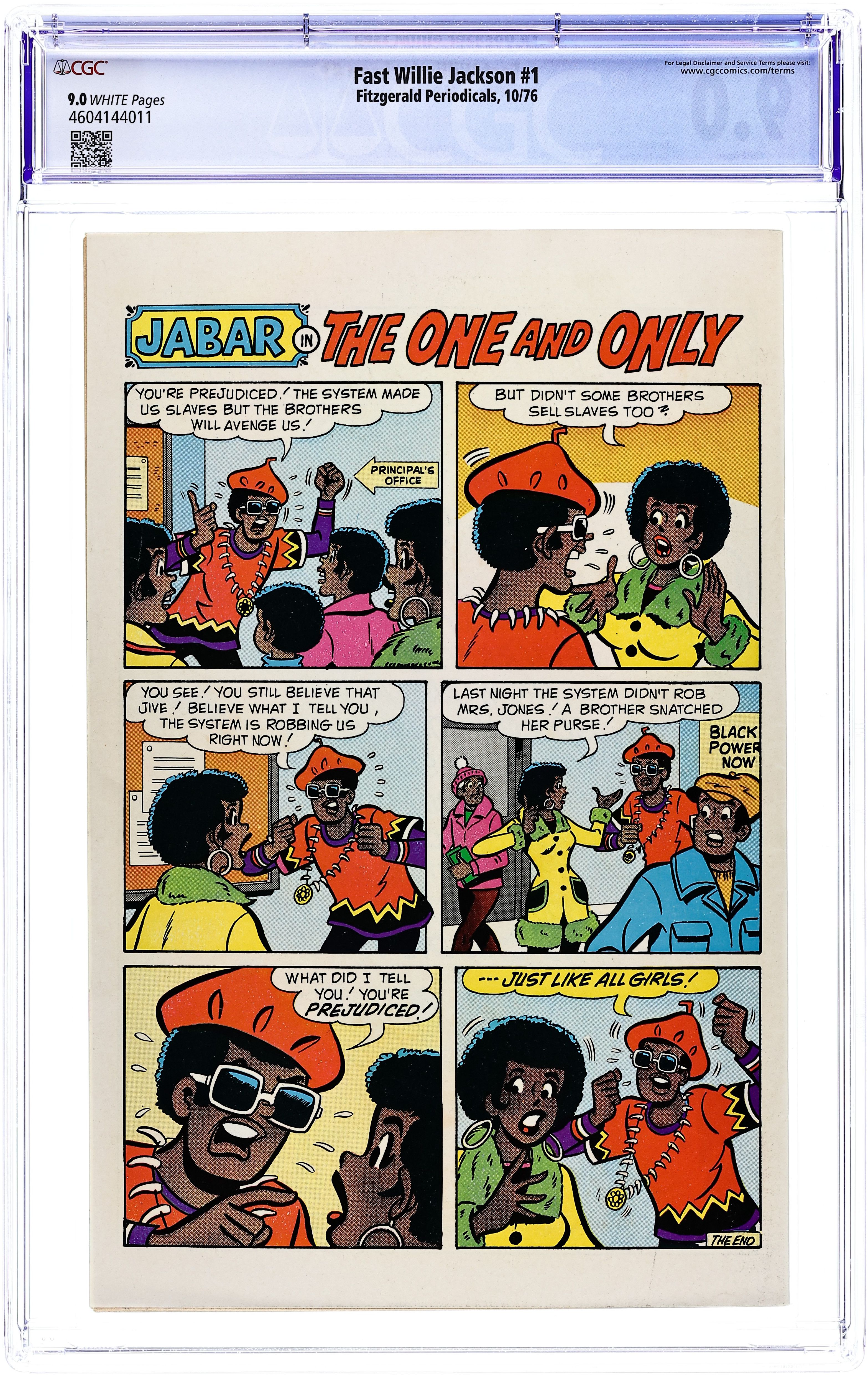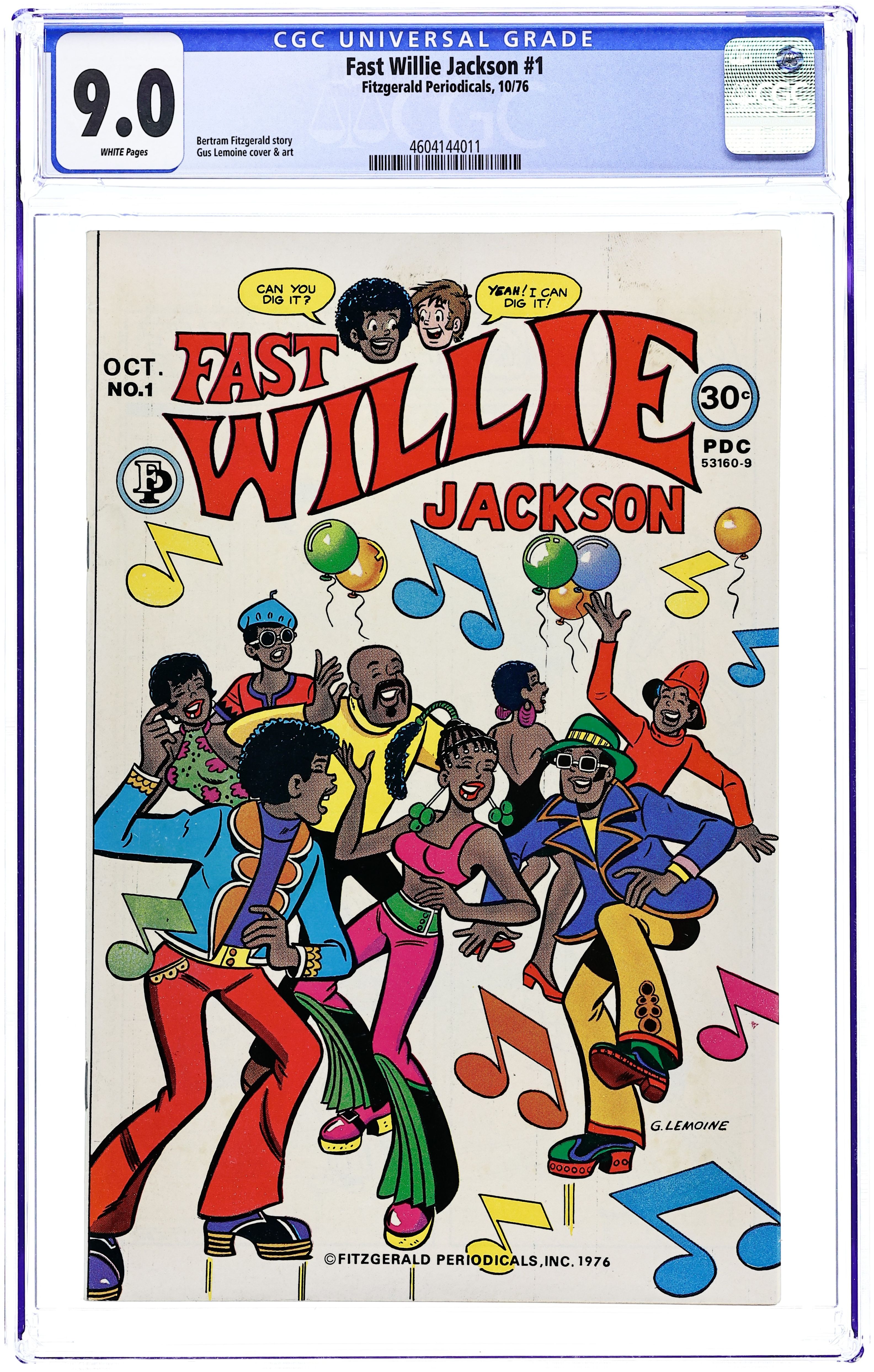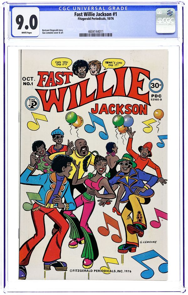 Fast Willie Jackson (#1-7) was published by Archie Comics/Fitzgerald Periodicals. It is essentially Archie done with a black cast of characters, and drawn in a style similar to Dan Decarlo's. The cast of characters include Jabar, Dee Dee Wilson, Jo-Jo, Hannibal, and Frankie Johnson, along with Fast Willie Jackson himself. Cover art by G. Lemoine. Finders Keepers, art by G. Lemoine; Willie is hassled by The Man. Happy Birthday, Frankie, art by G. Lemoine; Dee Dee gives Frankie a present on her birthday. Don't Thread On Dee Dee, art by G. Lemoine; Dee Dee wants cool clothes. King Of Kung-Fu, art by G. Lemoine; Hannibal tries learning martial arts. 36 pgs. $0.30. Cover price $0.30.