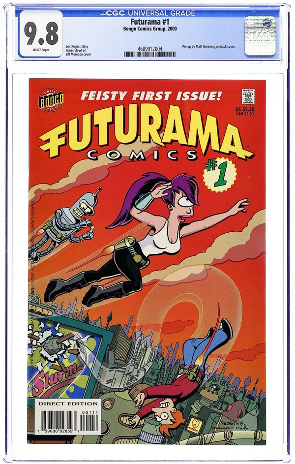 Direct Edition. Includes foldout poster inserted in the center! (W/A) Boothby Fearing that the Planet Express ship is about to crash, Fry, Bender, and Leela must each take a one-man escape pod, and they soon find themselves in separate worlds. Fry lands in a dusty, Old Western town under the thumb of a vengeful outlaw; Bender discovers a post-apocalyptic, fuel-deprived society of road warriors; and Leela becomes part of a society of blue-skinned natives who need help protecting their beloved rainforest from a military onslaught. Cover price $2.99.