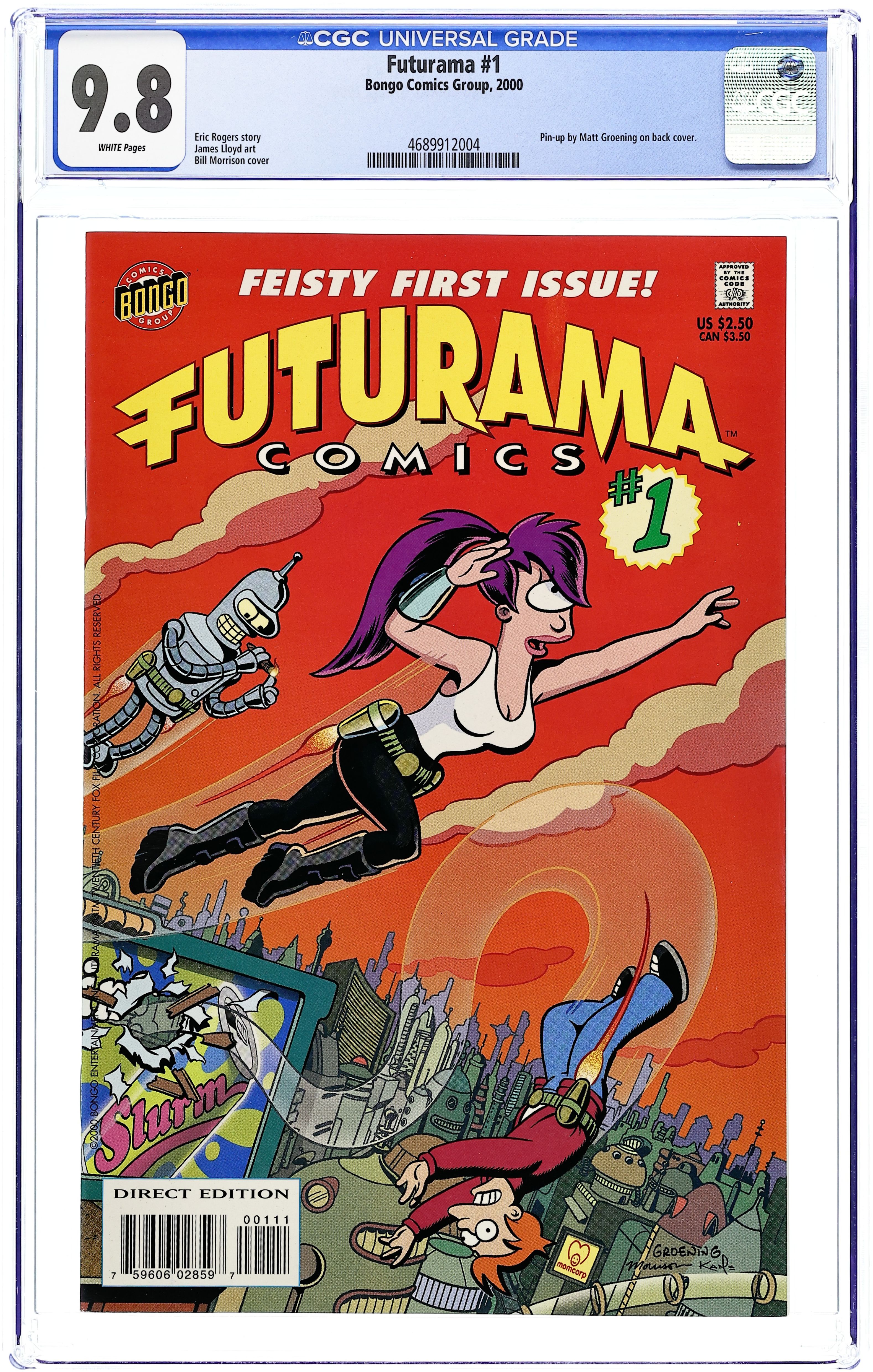 by Boothby, Lloyd, & Morrison When we last saw our fearless Planet Express crew, they were trapped in a Simpsons comic book for all eternity by the evil Brain Spawn! Professor Farnworth had been committed! Fry was trapped at Springfield Elementary School! And Nibbler, the only one holding together the delicate fabric of reality together, was having his brain lactified! Is all lost? Is there any future drama for the Futurama crew? Are they finally, truly and totally boned? Find out for yourself in the senses shattering finale of the epic we could only call... Chapter Two! FC, 32pg (2 of 2) $2.50 Cover price $2.50.