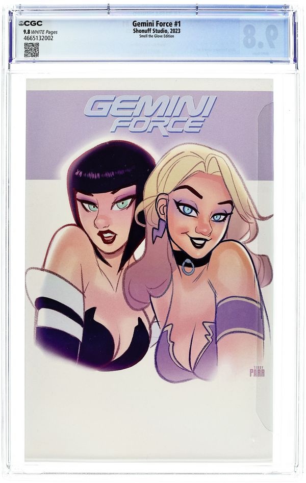 "Smell the Glove" Edition Variant Cover by Terry Parr. Story and Art by Terry Parr. Gwen & Kimmy are loud and fast girls! They were born with Rock 'N' Roll in their veins! They have been best friends since birth and they love to cause trouble. Gwen and Kimmy manage to escape from the clutches of their captor, Dr. Satan. Along the way they meet a robot named X-3. They decide to become the best rock band in the universe. When they go on tour, craziness ensues.