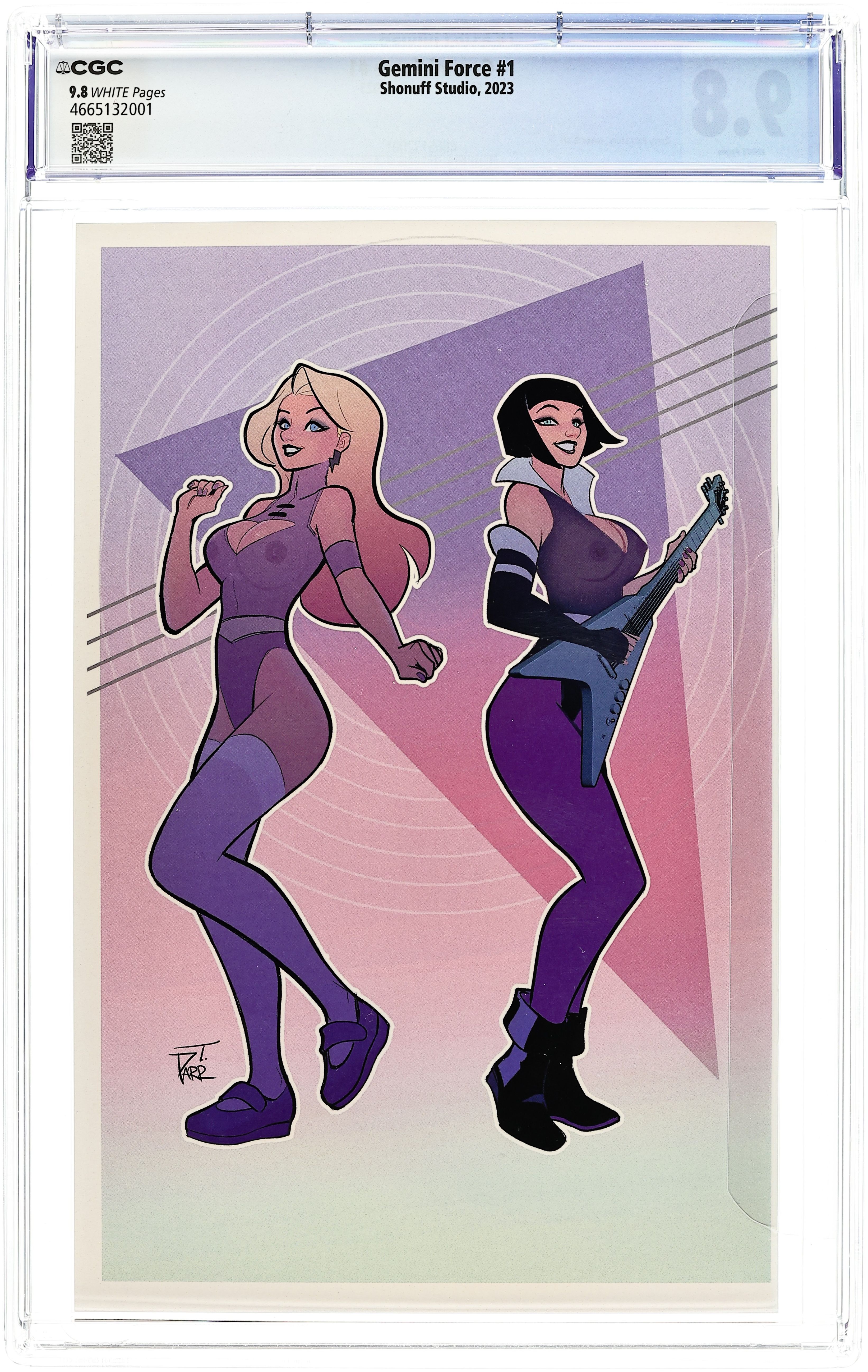 Story, Art, and Cover by Terry Parr. Gwen & Kimmy are loud and fast girls! They were born with Rock 'N' Roll in their veins! They have been best friends since birth and they love to cause trouble. Gwen and Kimmy manage to escape from the clutches of their captor, Dr. Satan. Along the way they meet a robot named X-3. They decide to become the best rock band in the universe. When they go on tour, craziness ensues.