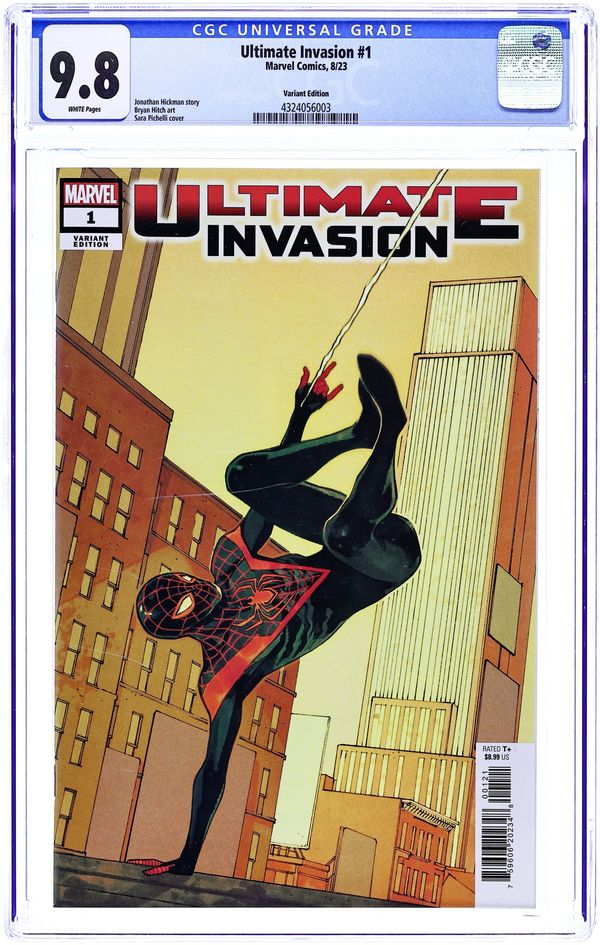 Comics Illuminati (Unknown Comics, Comic Traders, Anti-Hero Gallery, and The 616 Comics) Exclusive Virgin Cover by David Paratore. Written by Jonathan Hickman. Art by Bryan Hitch. THE TRANSFORMATION OF THE MARVEL UNIVERSE BEGINS! Superstar creators Jonathan Hickman and Bryan Hitch team up! The Illuminati must form once again to stop the Maker from his plans to destroy - or perhaps rebuild - the universe, with Miles Morales at the center of it all! Bryan's work on THE ULTIMATES helped redefine super hero comics for the 2000s - wait until you see what he and Jonathan have in store for this decade! Including new data pages by Jonathan Hickman - plus exclusive behind-the-scenes material on the world-building that has gone into this project! 56 pages, full color. Rated T+