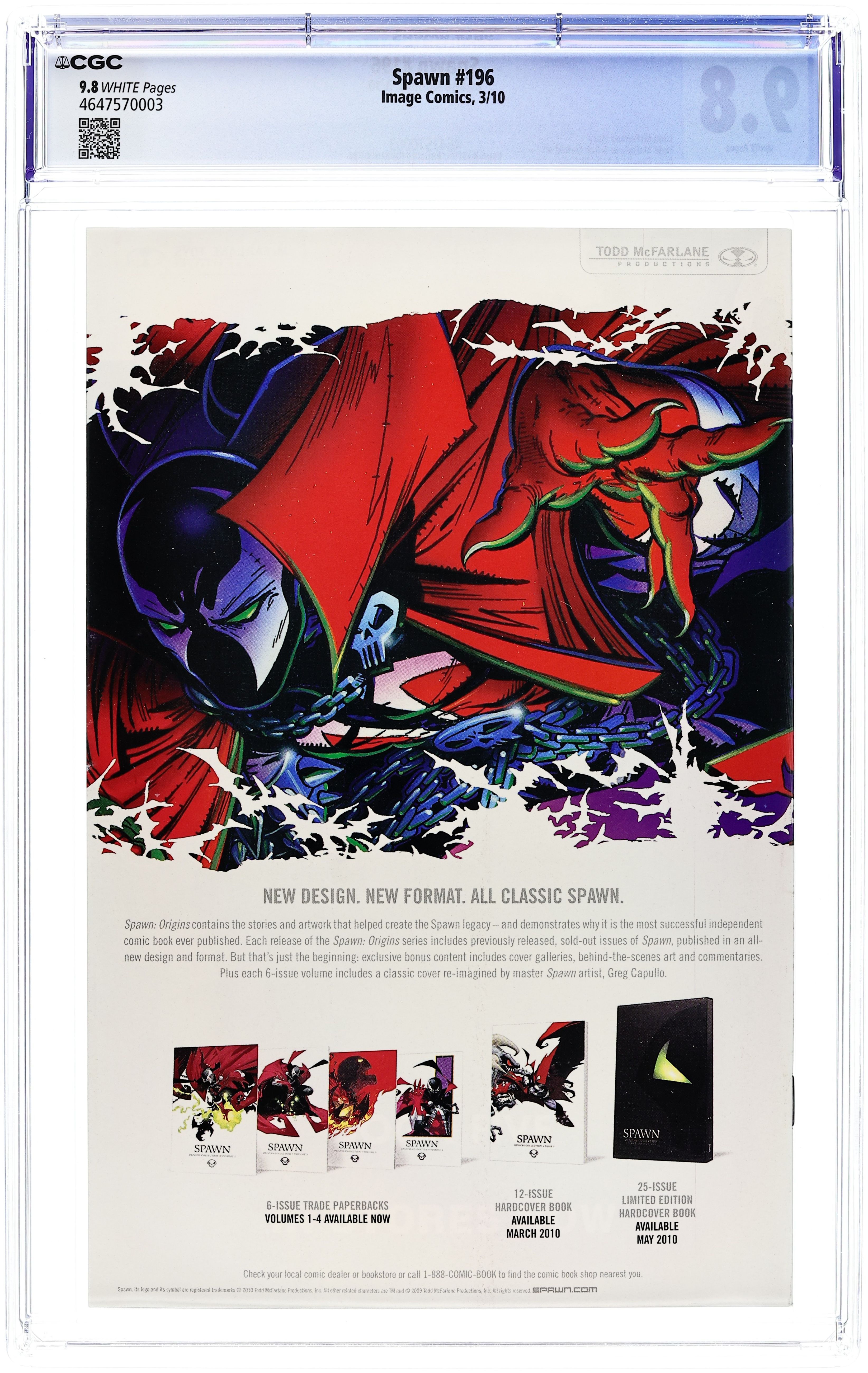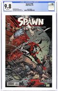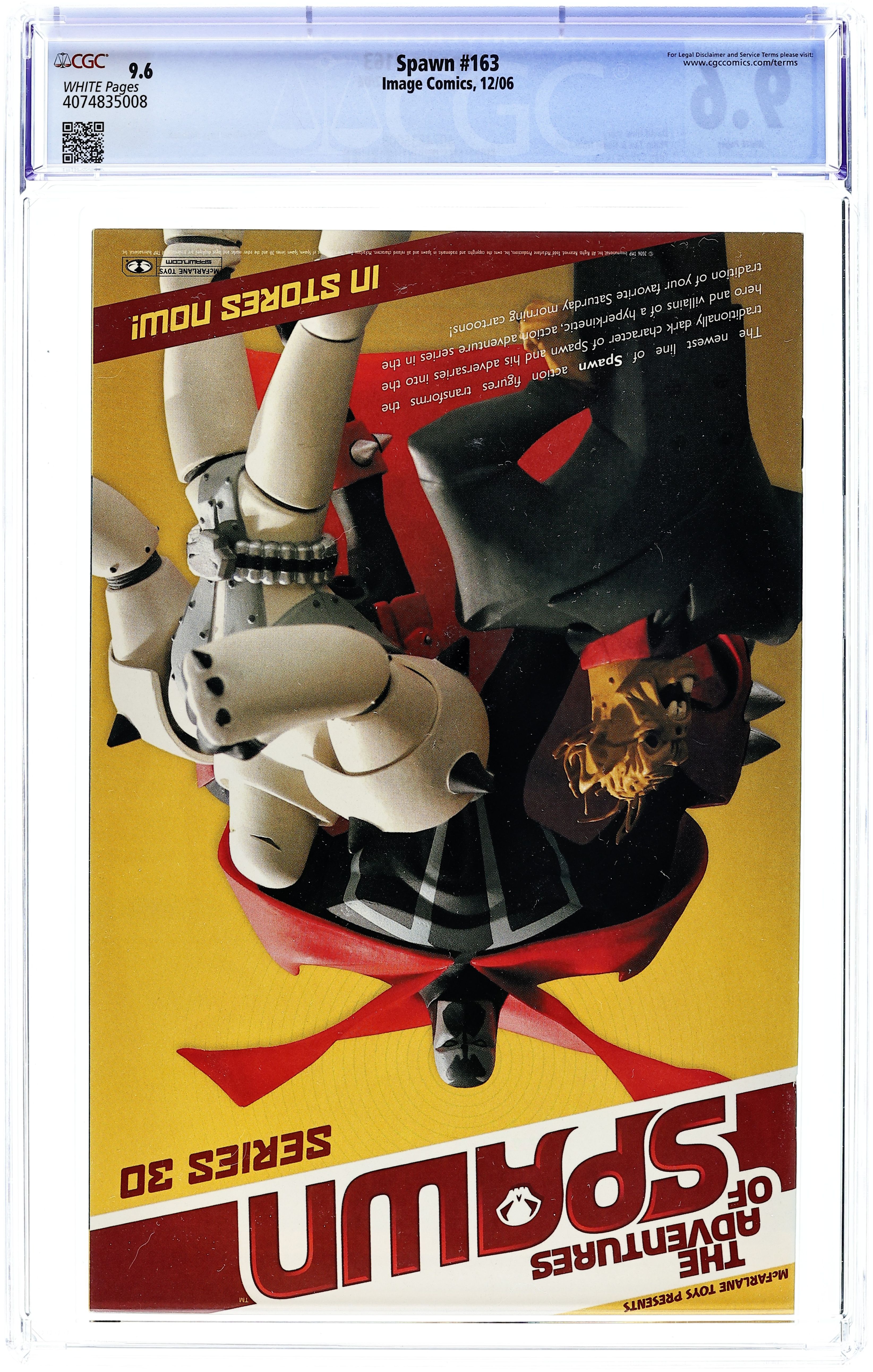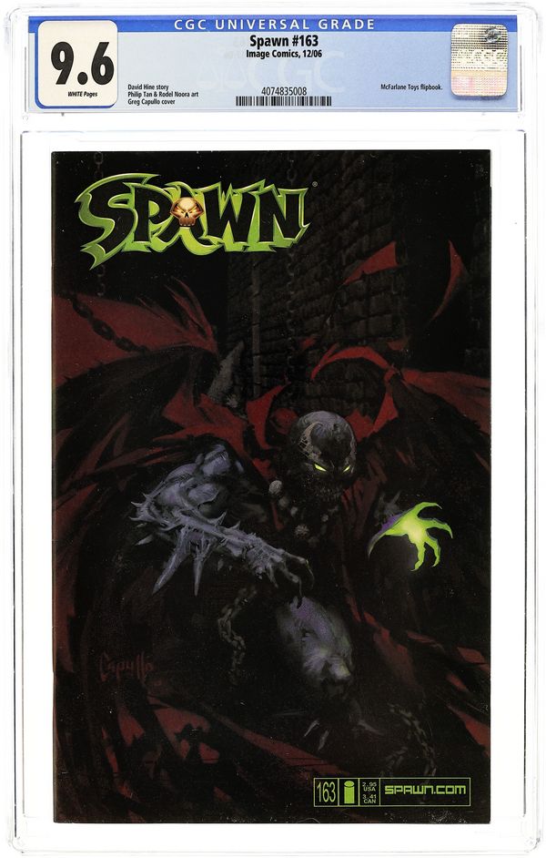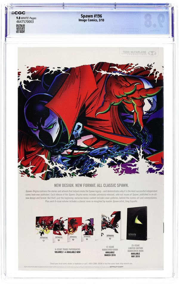 Todd McFarlane Cover - written by BRIAN HOLGUIN & TODD McFARLANE art by ANGEL MEDINA & DANNY MIKI cover by GREG CAPULLO "RANDOM PATTERNS," Part Three The groundbreaking 150th issue of Spawn is here, introducing a new creative team, a new enemy and a dark new beginning for the Hellspawn. #150 features four variant covers from different artists ? including Todd McFarlane, Greg Capullo, Philip Tan -- a double- length story, and added editorial content and pinup art. Don't miss this incredible issue that will change the future of Spawn forever. SEPTEMBER 2005, FC, 48 pages, $4.95 Cover price $4.95.