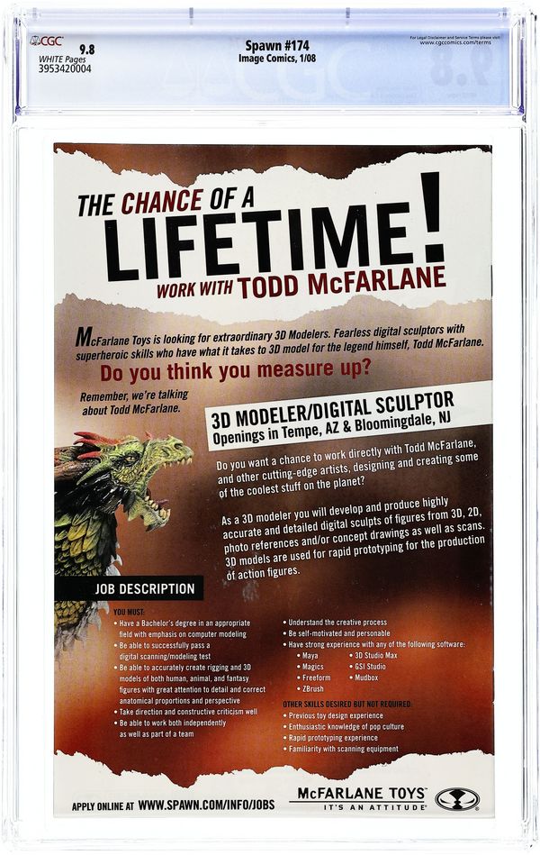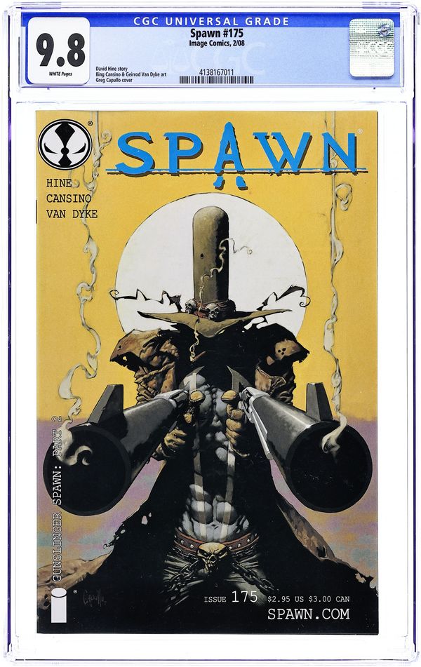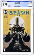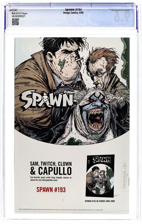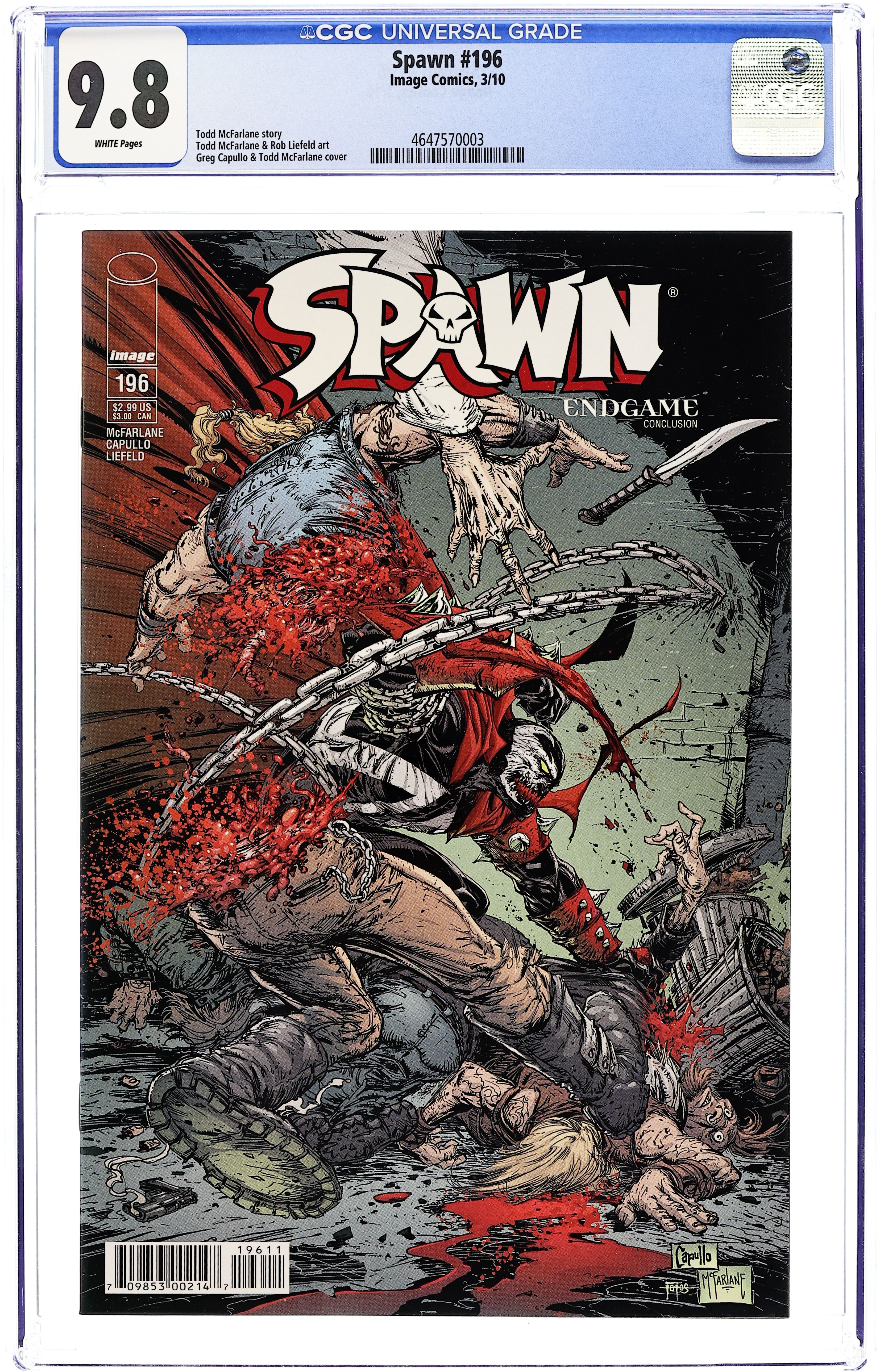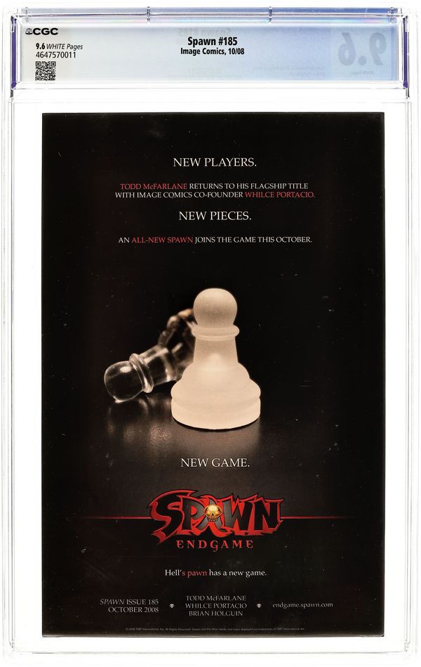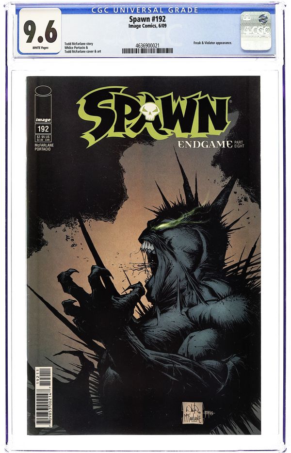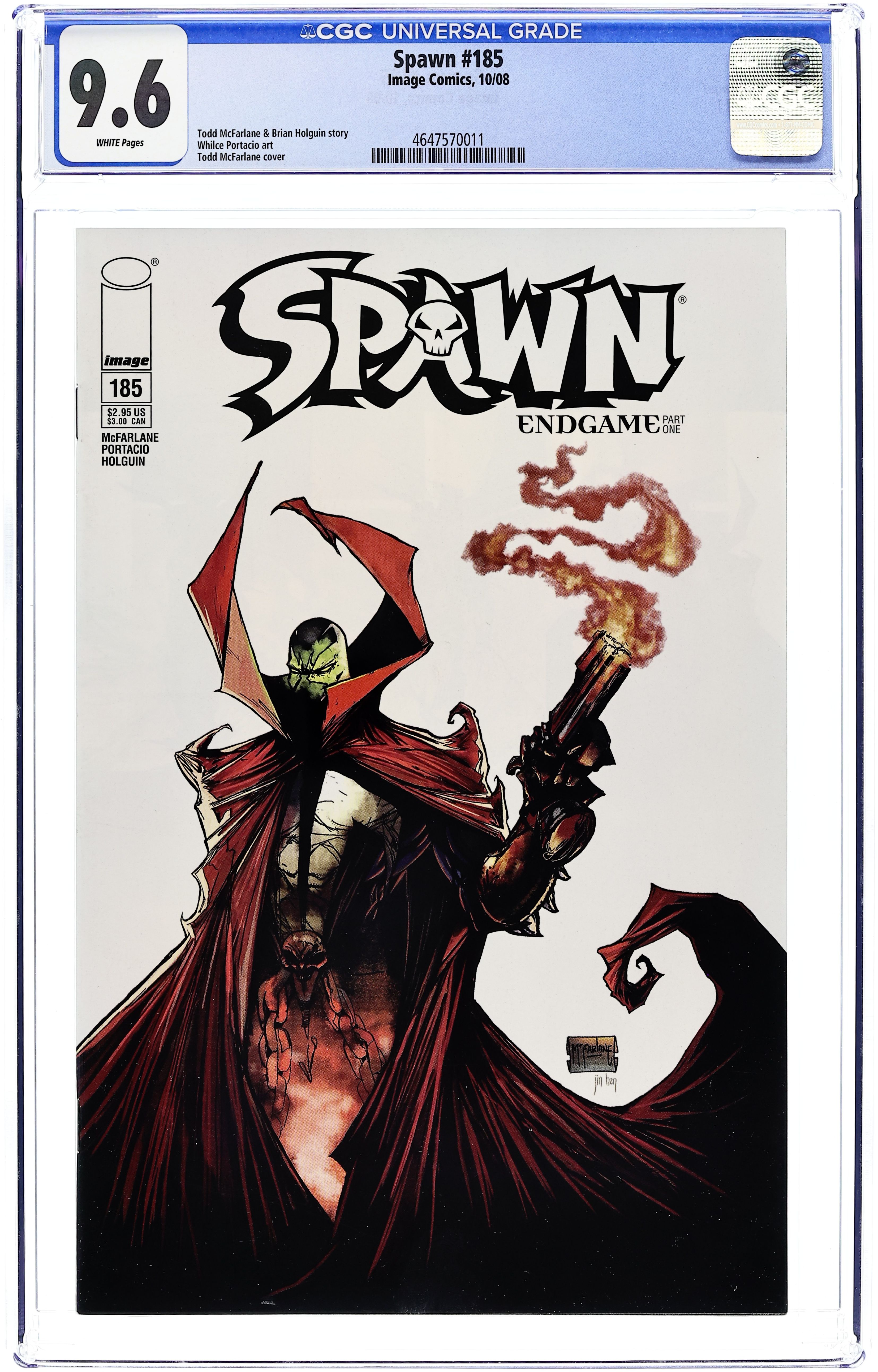 Cover by TODD MCFARLANE. Endgame: Part 1 - story TODD McFARLANE & BRIAN HOLGUIN art WHILCE PORTACIO & TODD McFARLANE. What new surprises can come out of a book that's been around more than 180 issues? A LOT! Featuring a brand-new creative team and the return of two Image Comics founders - TODD McFARLANE and WHILCE PORTACIO! Get ready for an event as big as issue #1! 32 PAGES, FC Cover price $2.95.