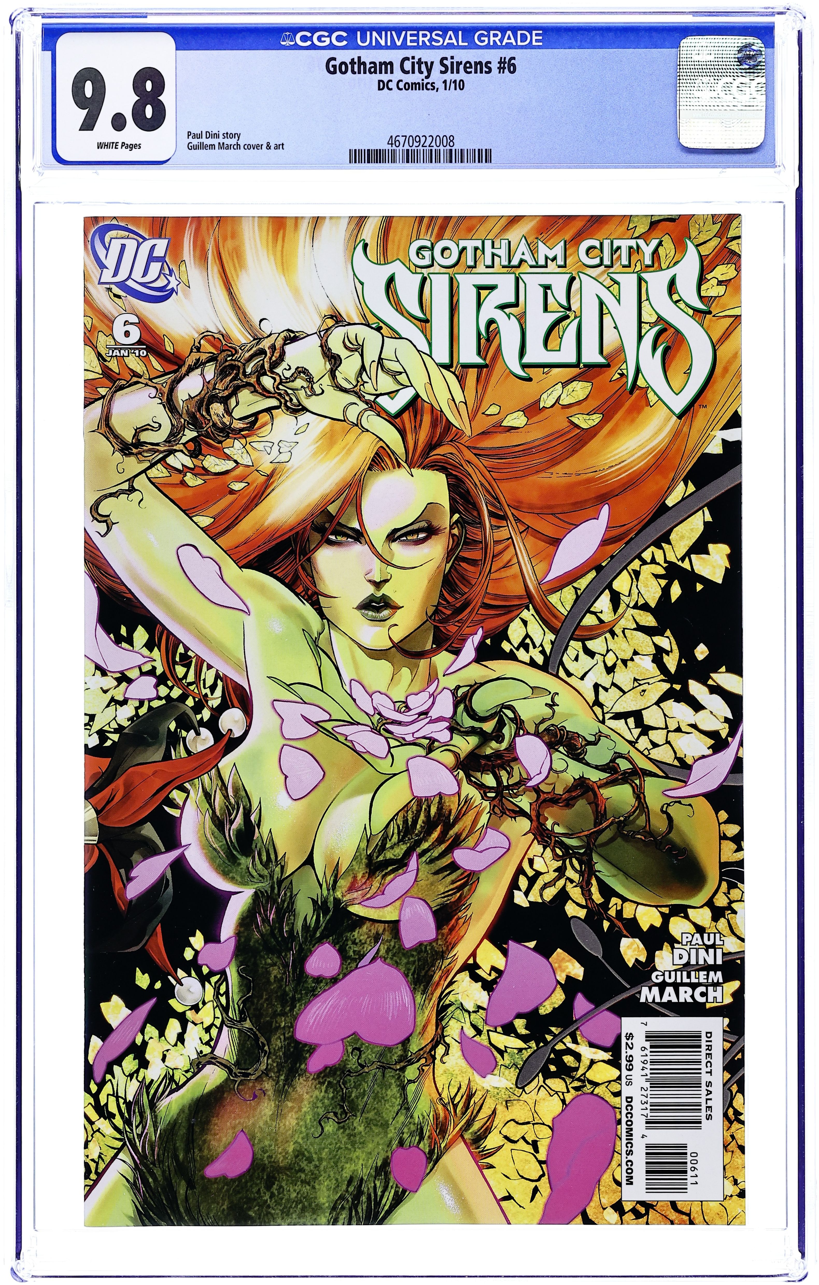 Limited 1 for 25 Retailer Incentive Variant Cover. Written by Arianna Turturro. Art by Various. Cover by Marcio Takara. A cover-gallery special celebrating the classy and criminal Gotham City ?xtures known as the Gotham City Sirens! Join Ivy, Harley, and Catwoman as they take a trip back down memory lane! 40 pages, full color. Rated T+ Cover price $5.99.