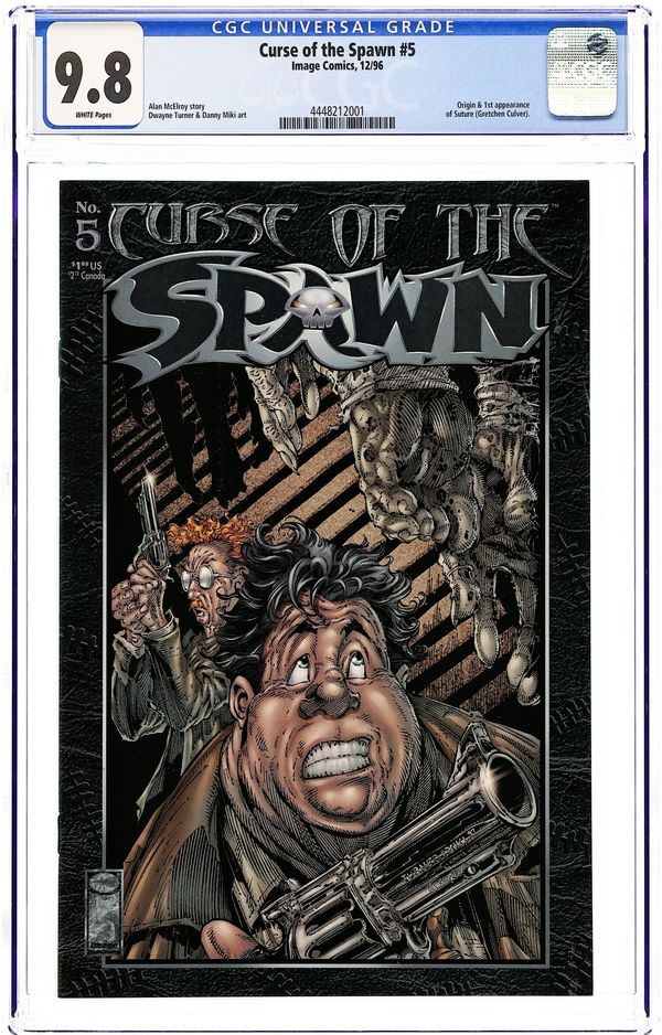 Newsstand Edition. Cover pencils by Dwayne Turner, inks by Danny Miki. Corpse Candles, script by Alan McElroy, pencils by Dwayne Turner, inks by Danny Miki; Spawn learns that the Anti-Pope has sent his minions to kill Madrid and Matthew. 36 pgs. $1.95. Cover price $1.95.