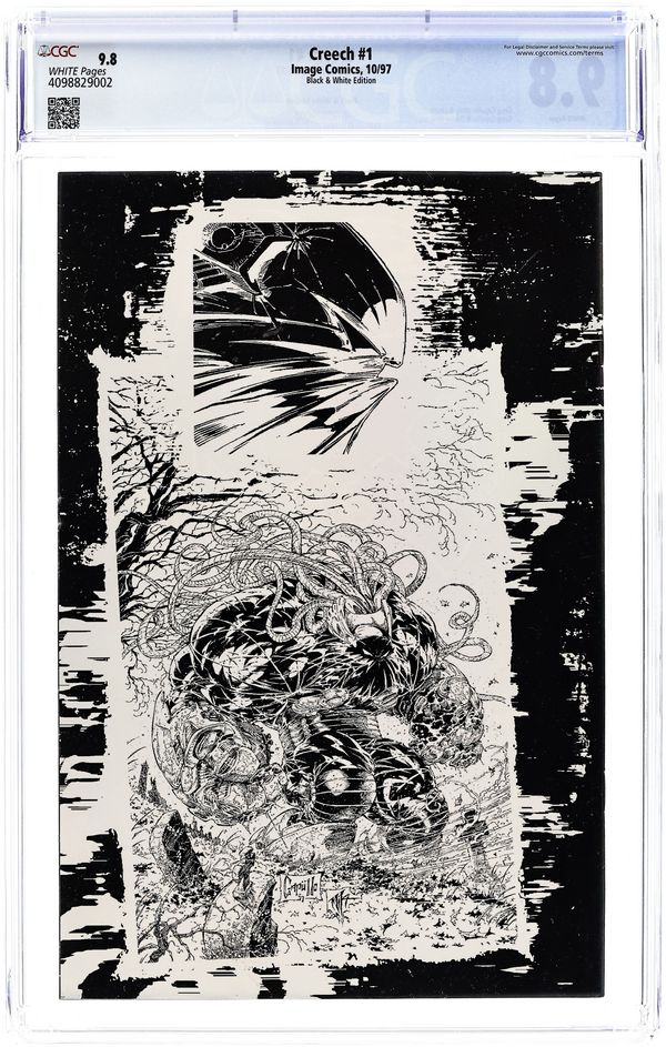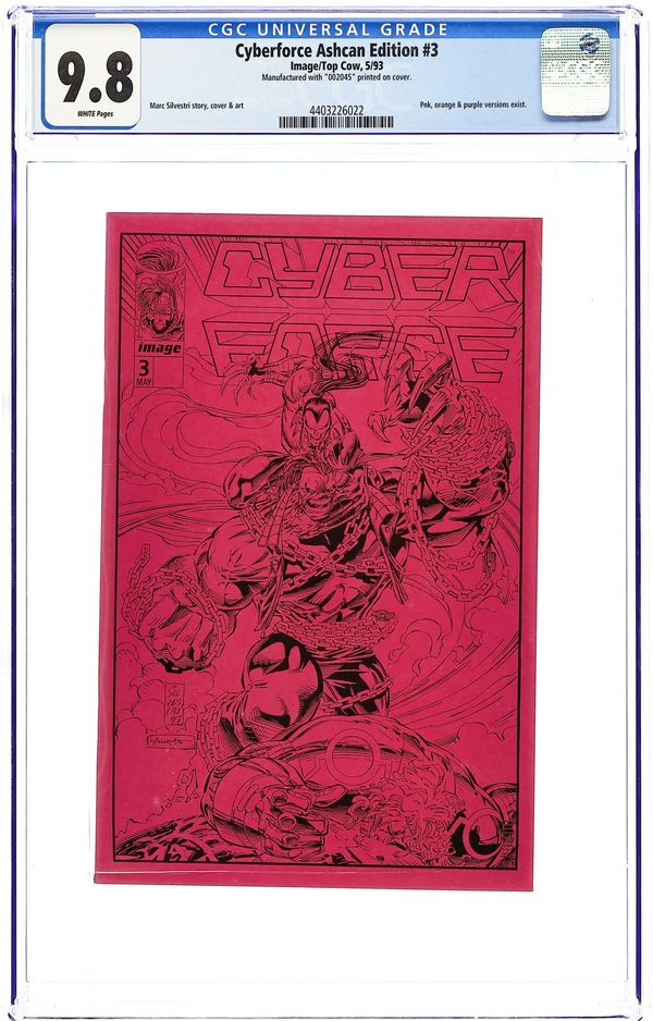 Deluxe Ashcan Edition (cover printed on pink, orange, or purple paper). Serially numbered in lower left corner and limited to 3,000 copies. 32 page B & W preview. Marc Silvestri. NOTE: Scan is for reference purposes only and does not reflect the actual edition number or cover color that will be received.
