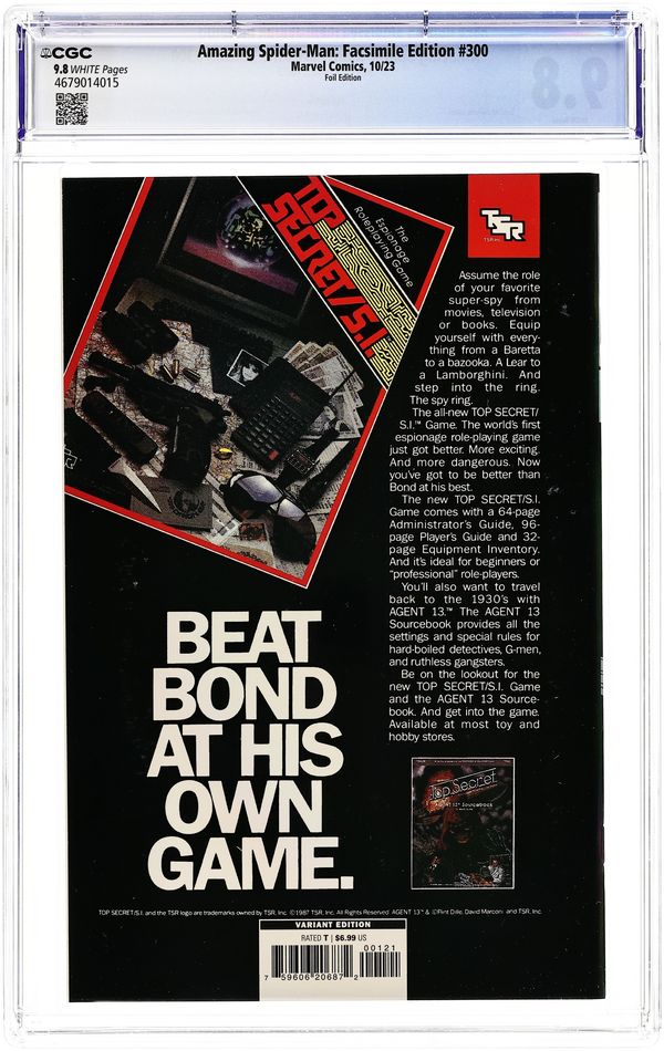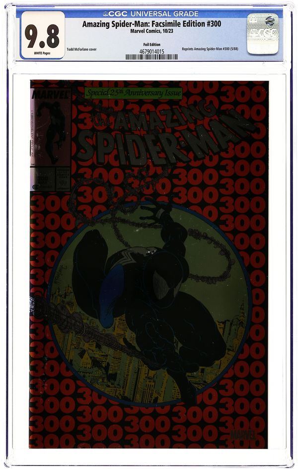 Foil Edition. Written by David Michelinie. Art by Todd McFarlane. Cover by Todd McFarlane. One of the fiercest rivalries of all is born in battle as Spider-Man meets his deadliest foe…a terrifying entity with all his powers, twice the muscle and two reasons to hate the wall-crawler! Because the symbiote costume that Peter Parker rejected has bonded with disgraced reporter Eddie Brock, who blames Spidey for ruining his career! Together, they…are…Venom! They've already terrorized Mary Jane, and now they seek revenge on their mutual nemesis! Can Peter summon all his strength and will and somehow find a weakness to exploit in Venom? Or will the bell toll for Spider-Man? From the fan-favorite creative team of David Michelinie and Todd McFarlane, it's one of the all-time great Marvel comic books, boldly re-presented in its original form, ads and all! 48 pages, full color. Rated T