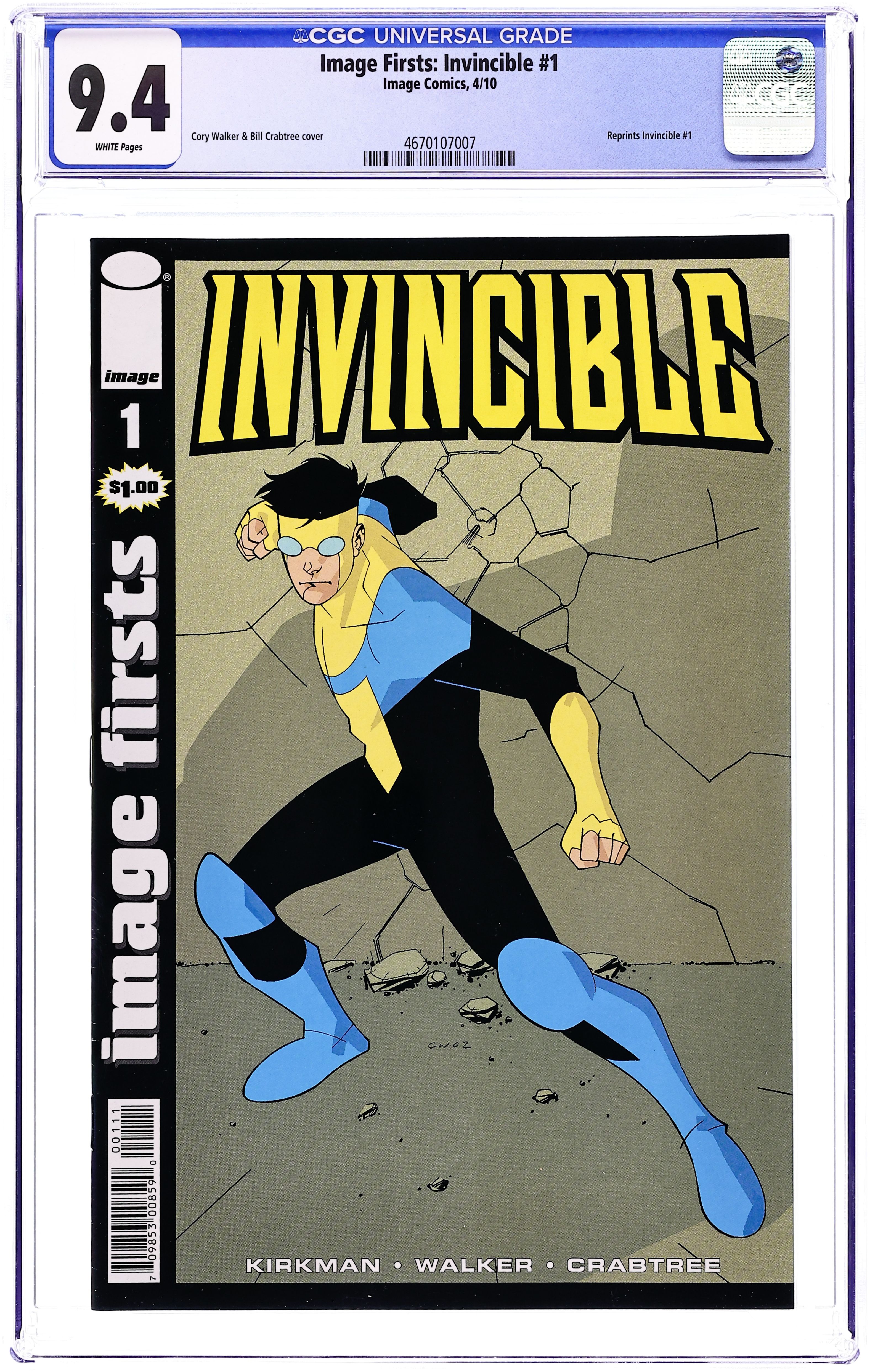 April 2010 Printing. $1 reprint of Invincible (2003) #1. Written by Robert Kirkman. Art and Cover by Cory Walker. Mark Grayson is just like most everyone else his age. He's a senior at a normal American high school. He has a crappy part time job after school and on weekends. He likes girls quite a bit...but doesn't quite understand them. He enjoys hanging out with his friends, and sleeping late on Saturdays...at least until the good cartoons come on. The only difference between Mark and everyone else is that his father is the most powerful superhero on the planet, and as of late, he seems to be inheriting his father's powers. Which sounds okay at first, but how do you follow in your father's footsteps when you know you will never live up to his standards? This issue: ORIGIN ISSUE!!! Strange things begin to happen to Mark Grayson as he begins to develop superpowers. Luckily, his dad is around to show him the ropes; at least he WOULD be if he weren't so busy saving the world all the time. Mark is forced to go out on his own, and try to figure out how all this superheroing business works. The results are a monumental disaster. Meanwhile, there's trouble at school, when Mark is dragged into a fight of epic proportions. Just in time for FREE COMIC BOOK DAY 2010, Image Comics is re-presenting 10 first issues as an introduction to the publisher's most acclaimed titles, with each acting as the perfect primer to their ongoing series and collected editions! 28 pages, full color. Cover price $1.00.
