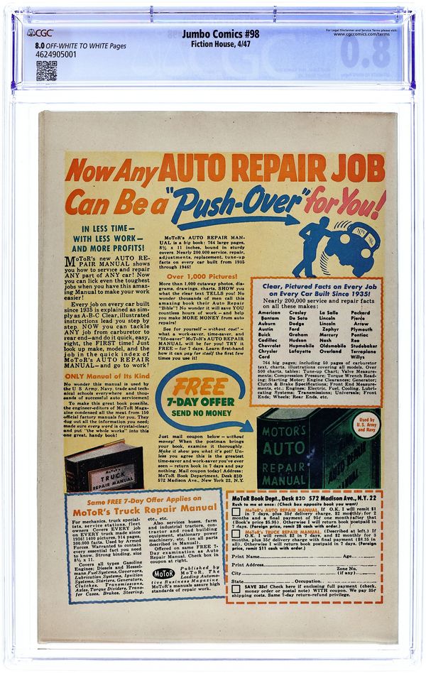 Published Jan 1947 by Fiction House.$350.00- Paper: Off white to white