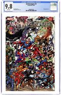 Written by KURT BUSIEK; Wraparound cover & art by GEORGE PÉREZ THE EVENT 20 YEARS IN THE MAKING!·WITH APPEARANCES BY EVERY AVENGER & JLA MEMBER ... EVER! THE WAIT IS OVER! The most eagerly anticipated comic book crossover of all time has finally arrived, with alternating Prestige Format issues by Marvel & DC Comics! What cataclysmic threat could endanger two universes - and dwarf the combined power of both Earth's Mightiest Heroes and the World's Greatest Super-Heroes? The world finally learns the answer in September 2003! 48 PGS./PRESTIGE FORMAT/MARVEL PG...$5.95 UPC: 5960605369-00111 Cover price $5.95.