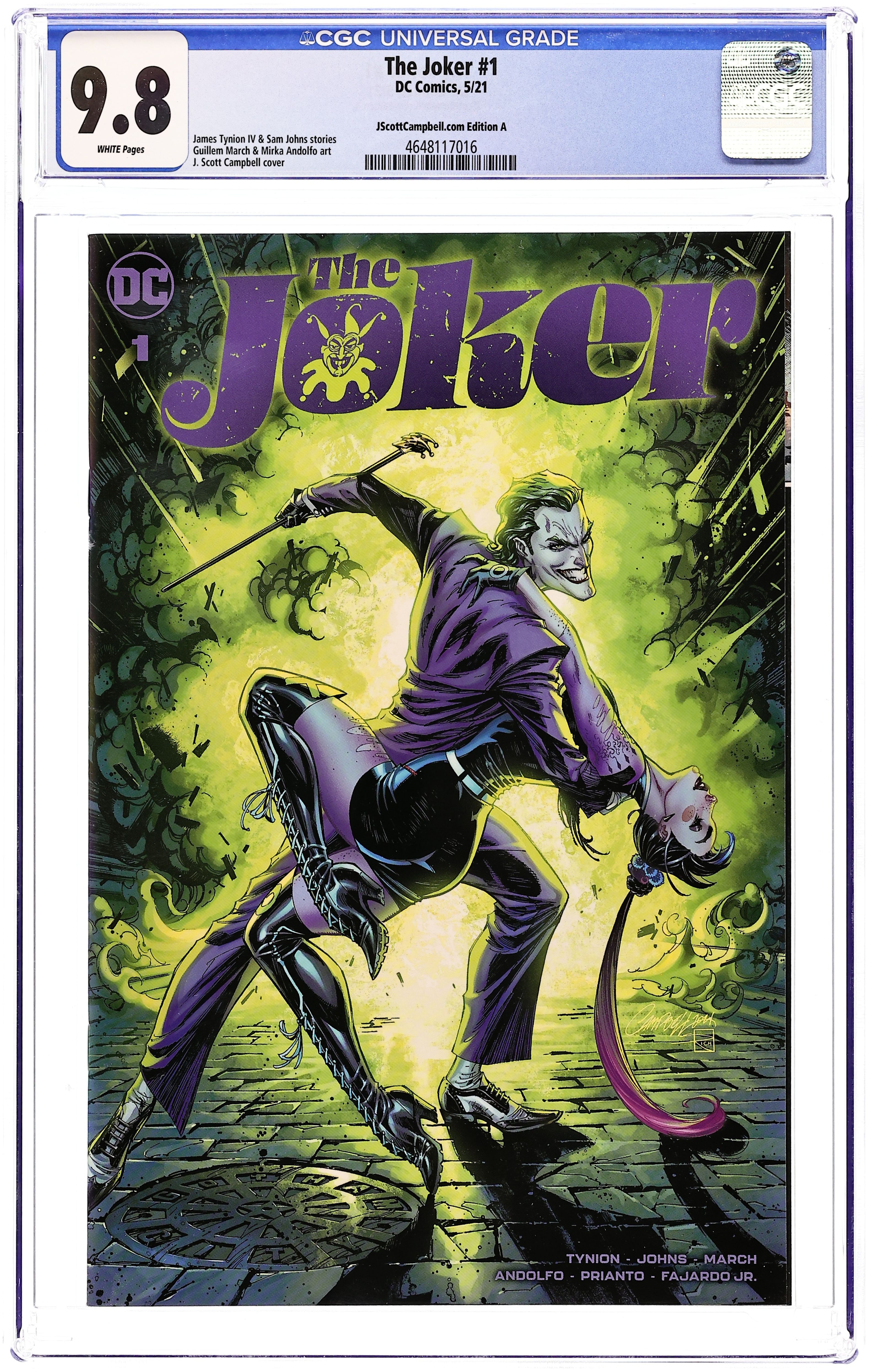Written by James Tynion IV, Sam Johns. Art by Giuseppe Camuncoli, Cam Smith, Belen Ortega. Cover by Alan Quah. FINAL ISSUE All the hunters converge on the Sampson estate as the brutal conclusion to the first "season" of The Joker is here! Bullets will fly, blood will be shed, and will James Gordon be forced to make the choice hes been dreading since issue #1? Punchline Backup: Punchline walks free, and the Royal Flush Gang is desperate for a new queen. The underworld of Gotham City is going to change forever, and this last chapter of "Punchline" is only the beginning. 40 pages, full color. Rated T+ Cover price $5.99.