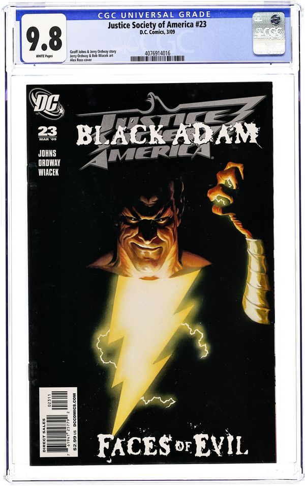 Faces of Evil - Black Adam and Isis: Part 1 of 3 - Written by Geoff Johns. Art by Jerry Ordway and Bob Wiacek. Cover by Alex Ross The new Justice Society regroups just in time to face one of their greatest and most personal enemies - Black Adam! The sorcerer Felix Faust has imprisoned the soul of Isis, Black Adam's deceased wife. But the Black Marvel just figured that out, and nothing will save Faust from his wrath - nothing except maybe the Justice Society of America. And everybody will be in for a surprise when they discover how Isis has changed since her death at the hands of the Four Horsemen. Will she be a friend to the world - or will she be its destruction? 32 pg, FC Cover price $2.99.