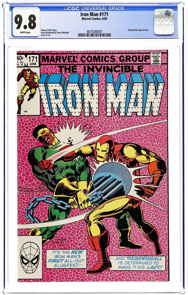 "Ball and Chain" Script by Denny O'Neil. Pencils by Luke McDonnell. Inks by Steve Mitchell. Cover by Luke McDonnell and Steve Mitchell. After informing the Avengers that he can no longer serve with the team, Rhodey (along with Morley Erwin) takes a drive to Niagara Falls! The duo is going to visit Morley's sister who works in a local power plant! However a certain Asgardian-enchanted super-villain arrives at the plant first... Thunderball! The erstwhile member of the Wrecking Crew demands an audience with his former girlfriend who lives in the area! But instead he gets an audience with the Invincible Iron Man! Is Jim Rhodes ready for his first solo adventure... against the mighty Thunderball? First appearance of Clytemnestra Erwin. Cameo appearances by Tony Stark and Heather Glenn. (Notes: Thunderball appears next in Amazing Spider-Man 247. The story's interlude with Heather Glenn continues in Daredevil 195.) 32 pages. Cover price $0.60.