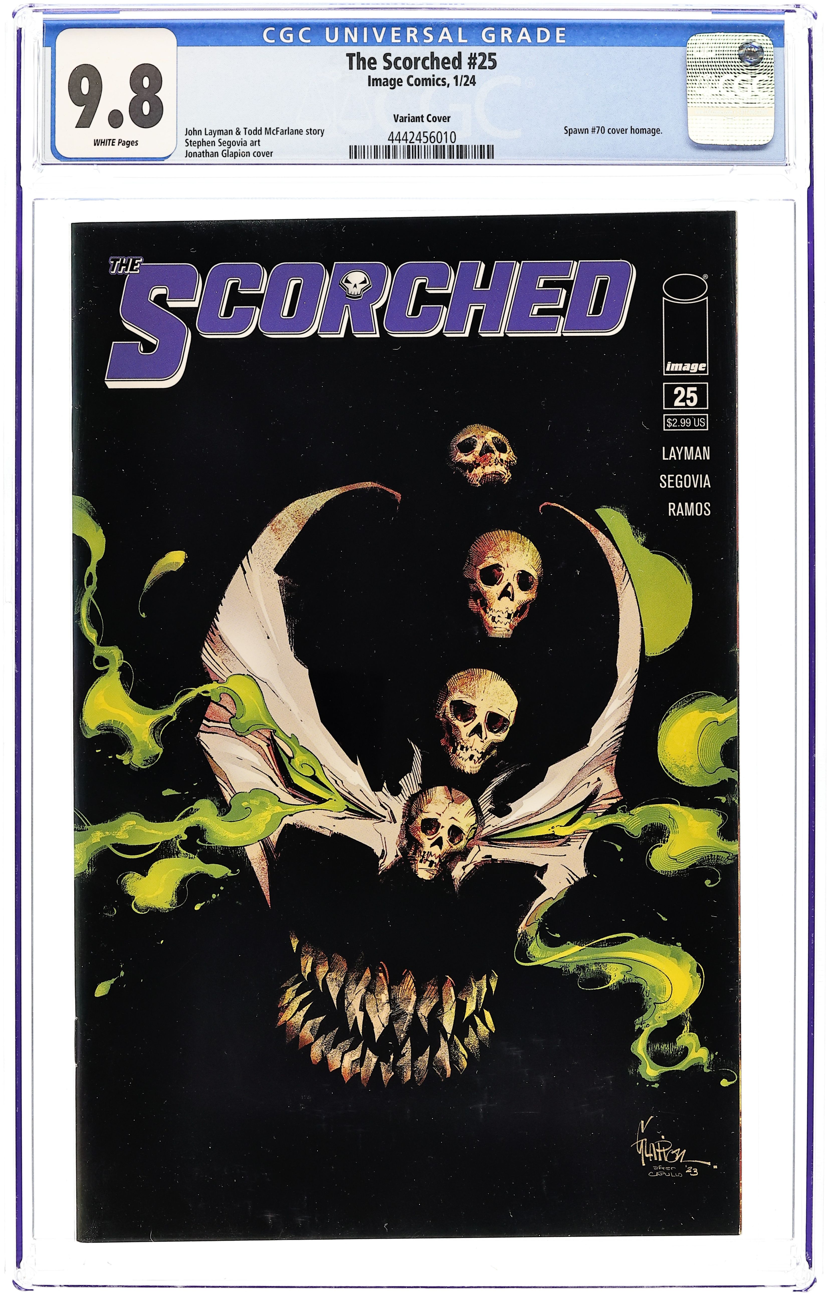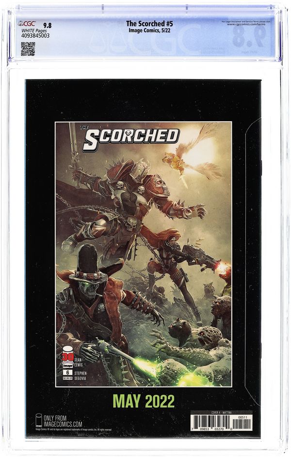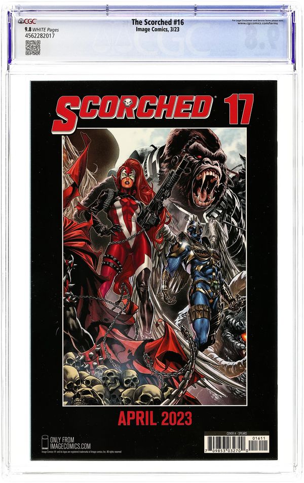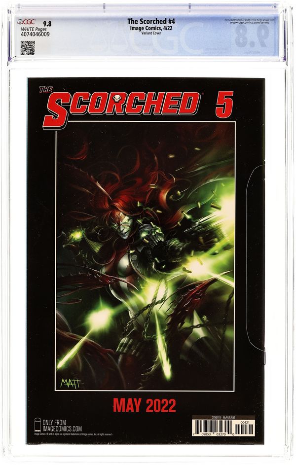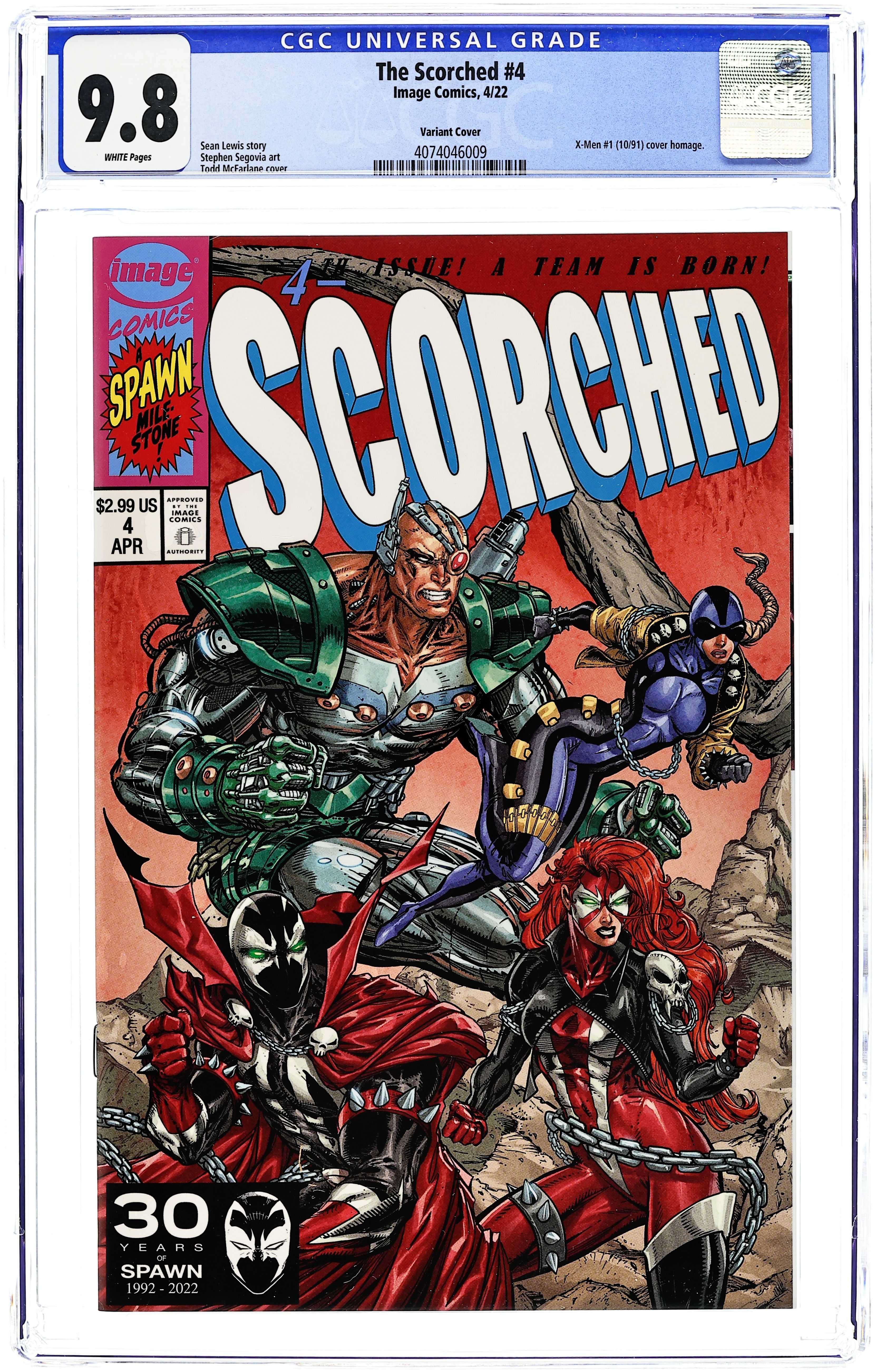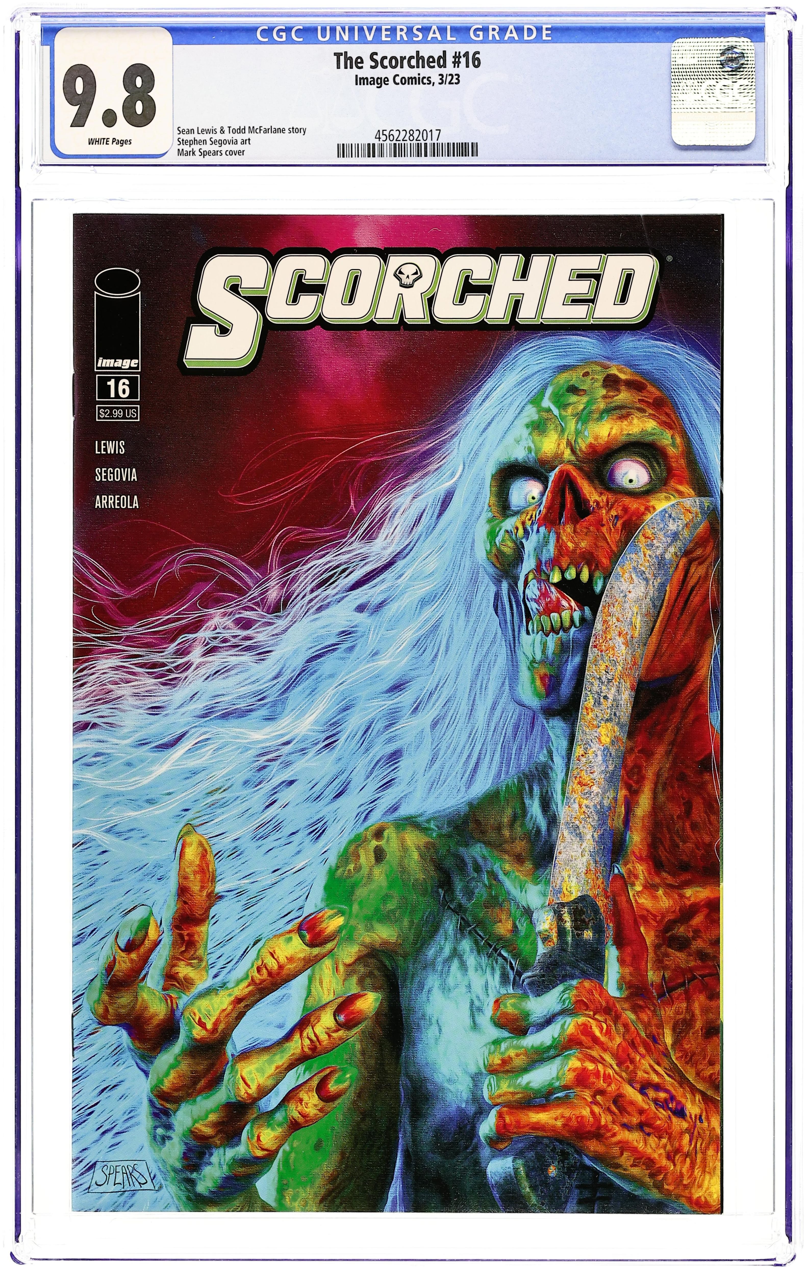 Written by Sean Lewis. Art by Stephen Segovia. Cover by Todd McFarlane. SOUL CRUSHER proves to be a much bigger threat to the team than they initially thought when he turns out to be part of a network of individuals determined to bring them all down. But will opposing ideals and motivations bring an end of the Scorched before Soul Crusher has a chance to? 24 pages, full color. Cover price $2.99.